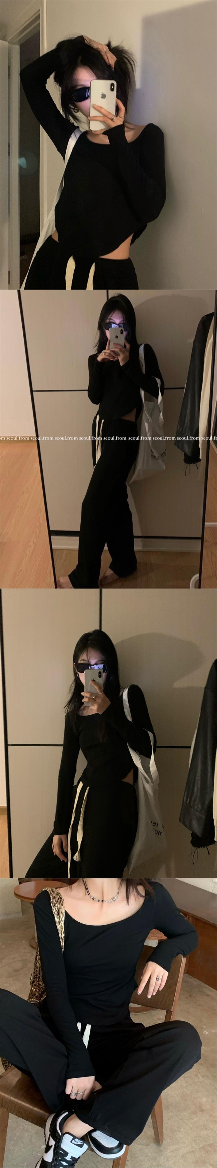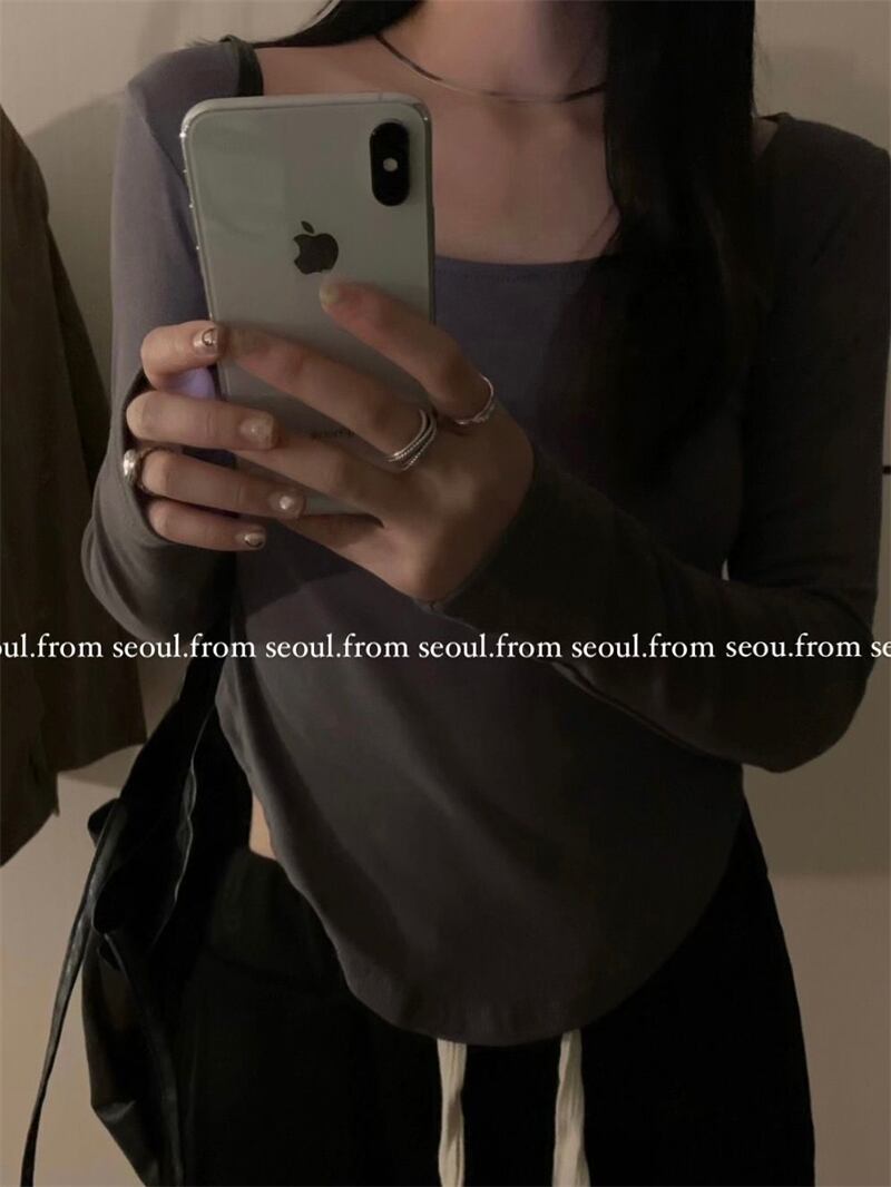 グレーカジュアルTシャツ オータムスリムフィット薄手トップス ロング ストリート 秋物 スクウェア モンロー2033348858