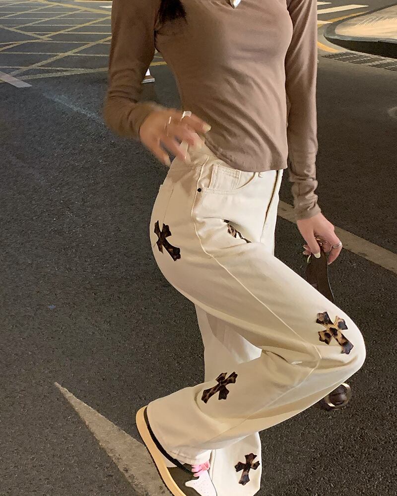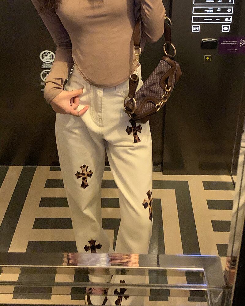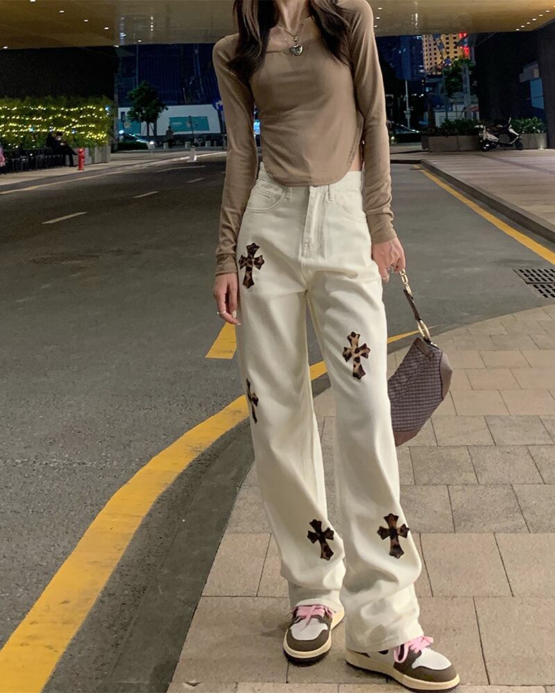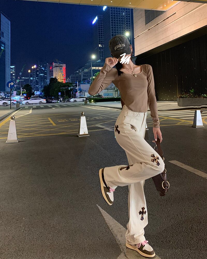 ハイウェストウェストジーンズ レディーススプリングオータムルーズパンツ 春物 秋物 モンロー35111056931