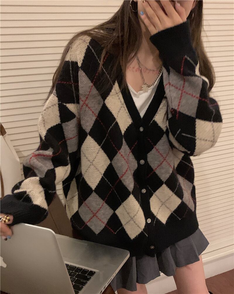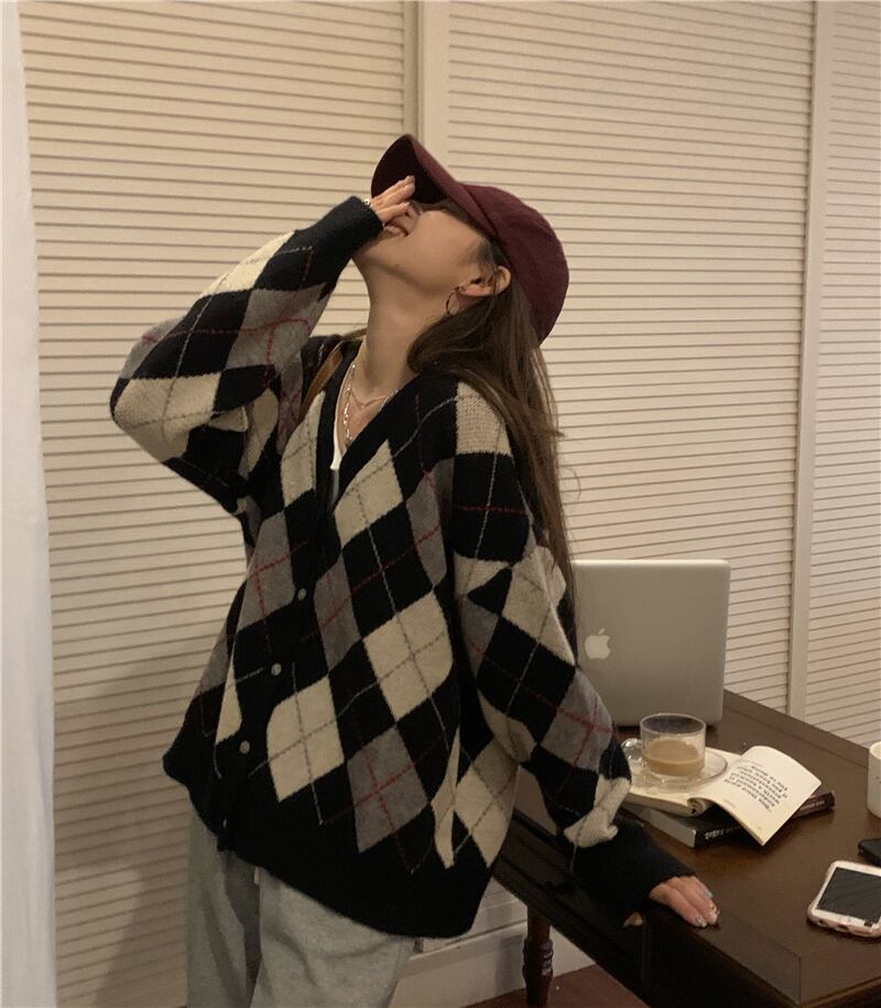 スタンダードスタイルニットカーディガンオータム薄手ルーズセーター コート ジャケット レトロ 秋物 モンロー38622360640