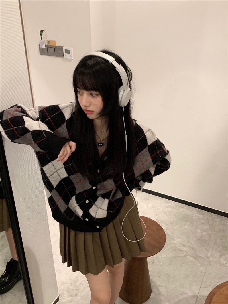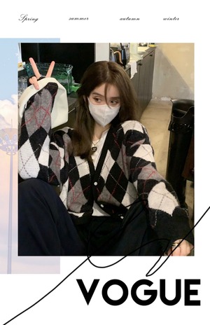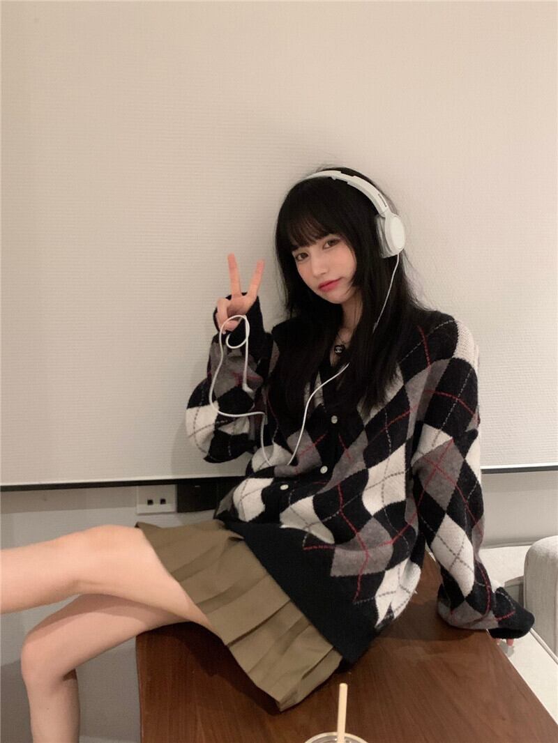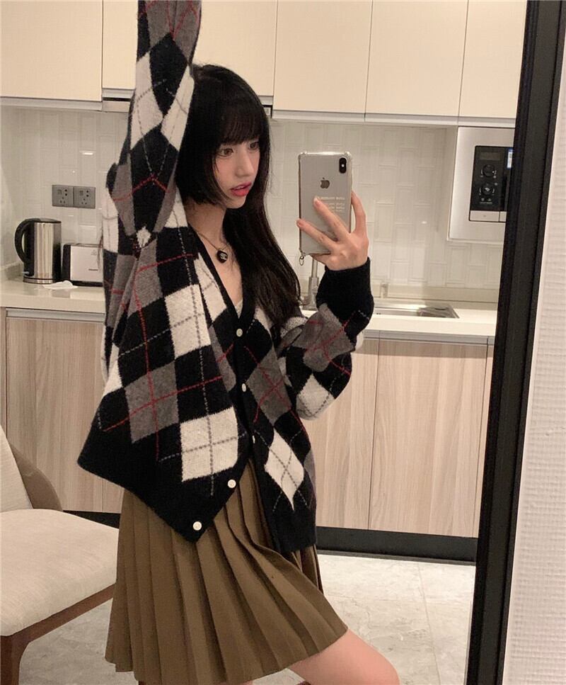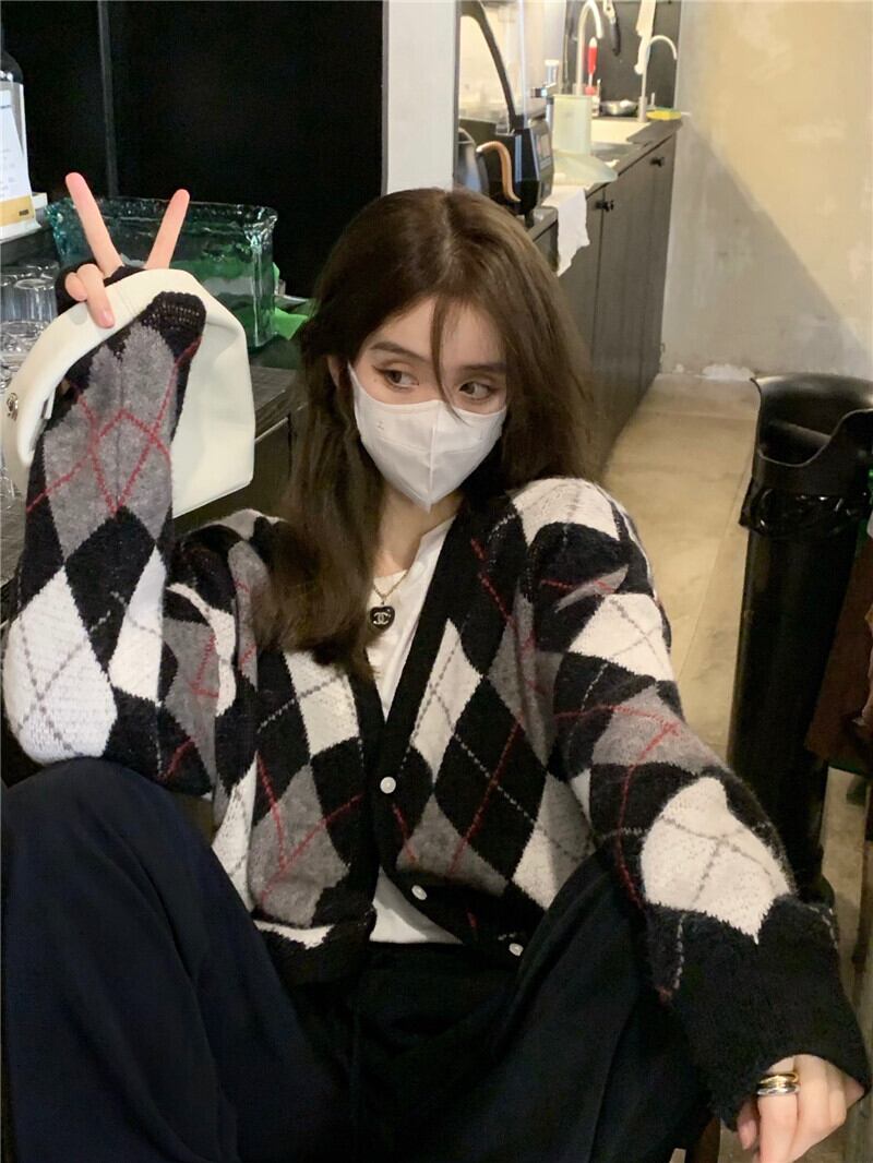 スタンダードスタイルセーター ジャケット オータムルーズVネックトップス ロング レトロ 秋物 モンロー10735032596