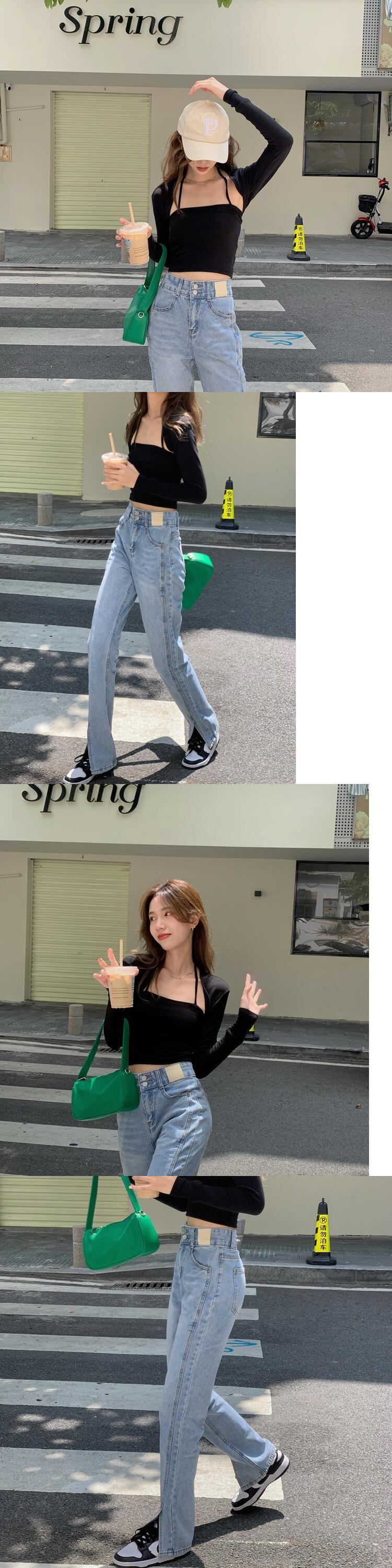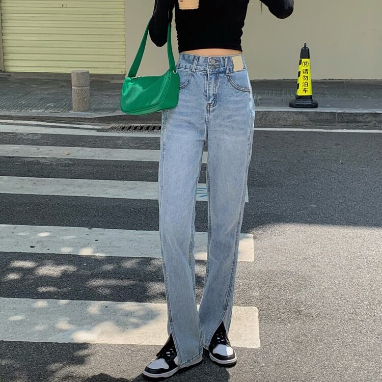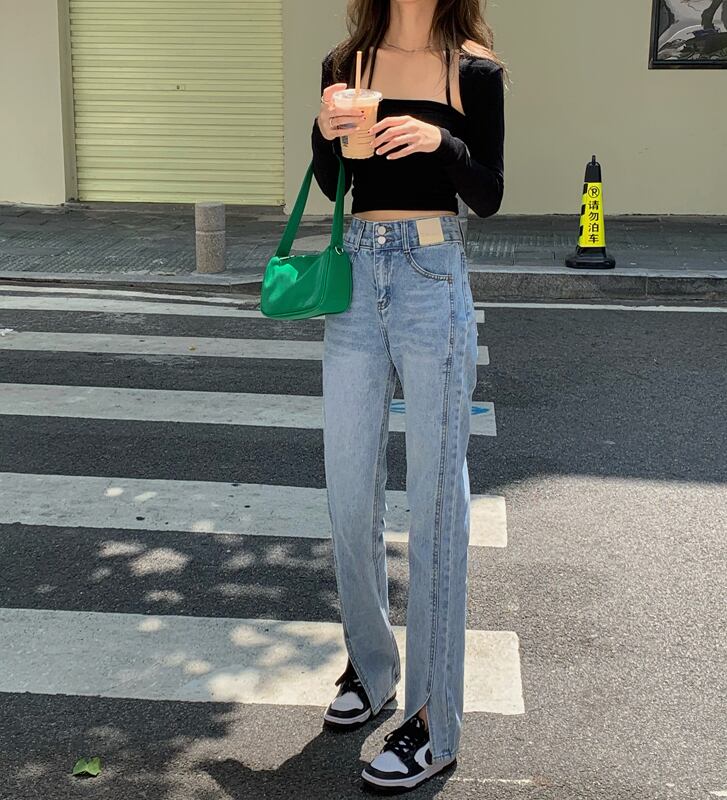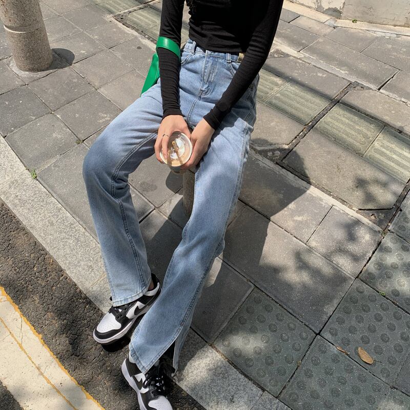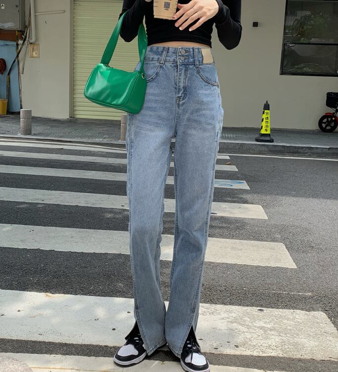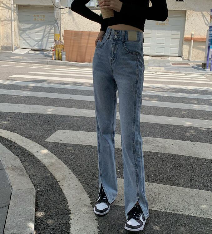 ブルーハイウェストジーンズ スプリングオータムルーズロングパンツ 春物 秋物 モンロー22921064545