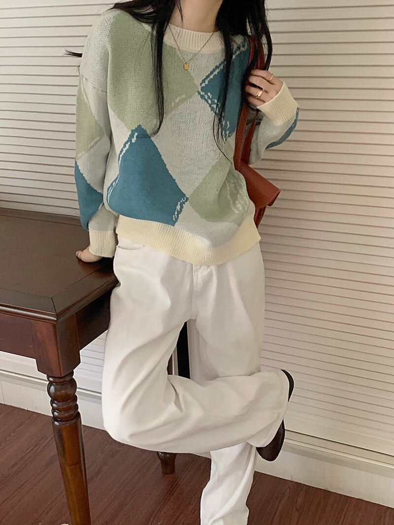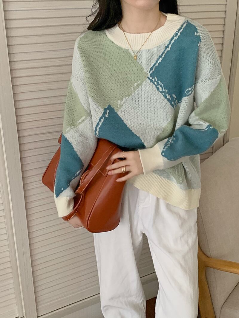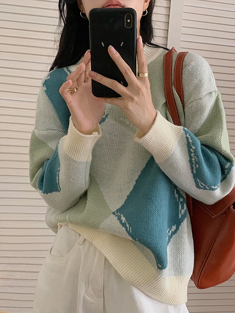 スタイルルーズセーター オータムスタンダードプルオーバー トップス ロング レトロ 秋物 モンロー88651020321
