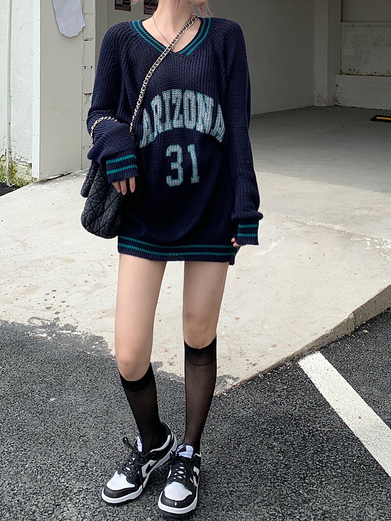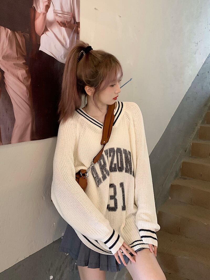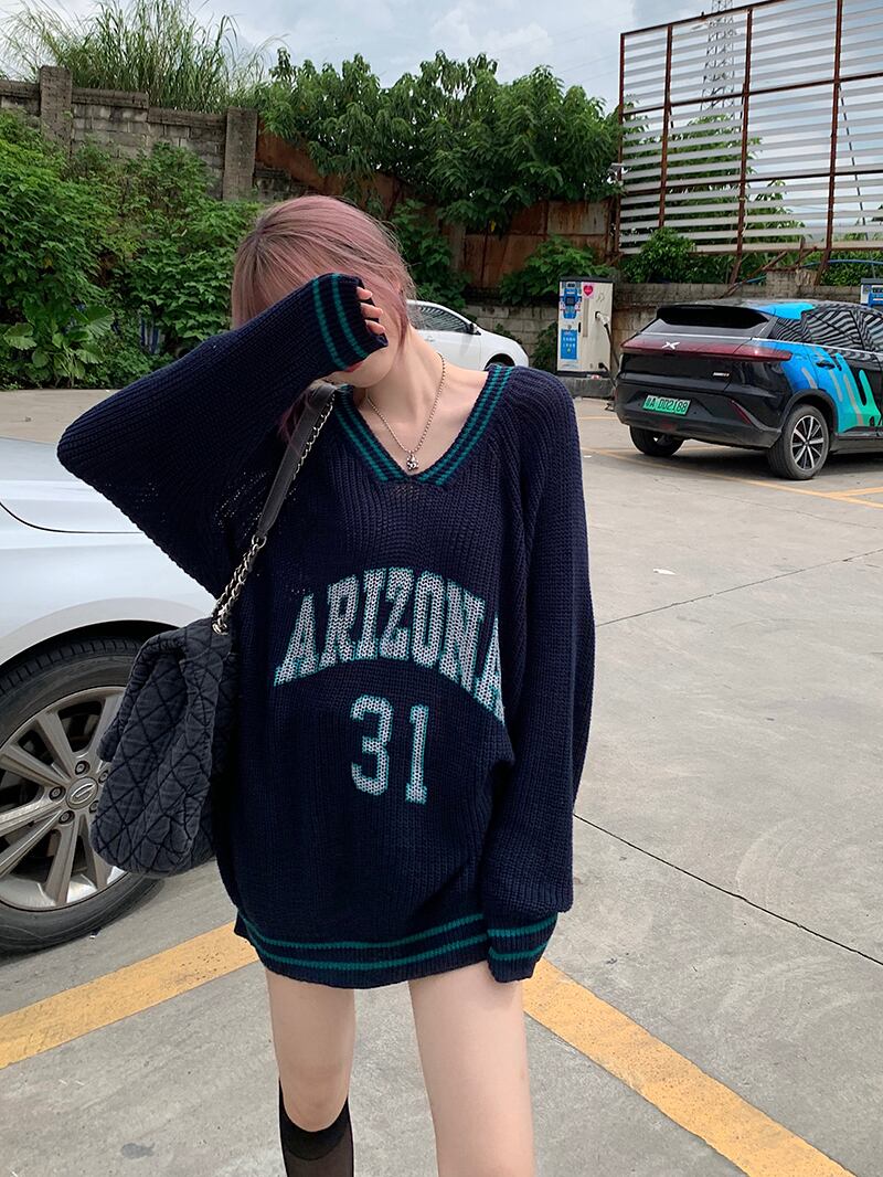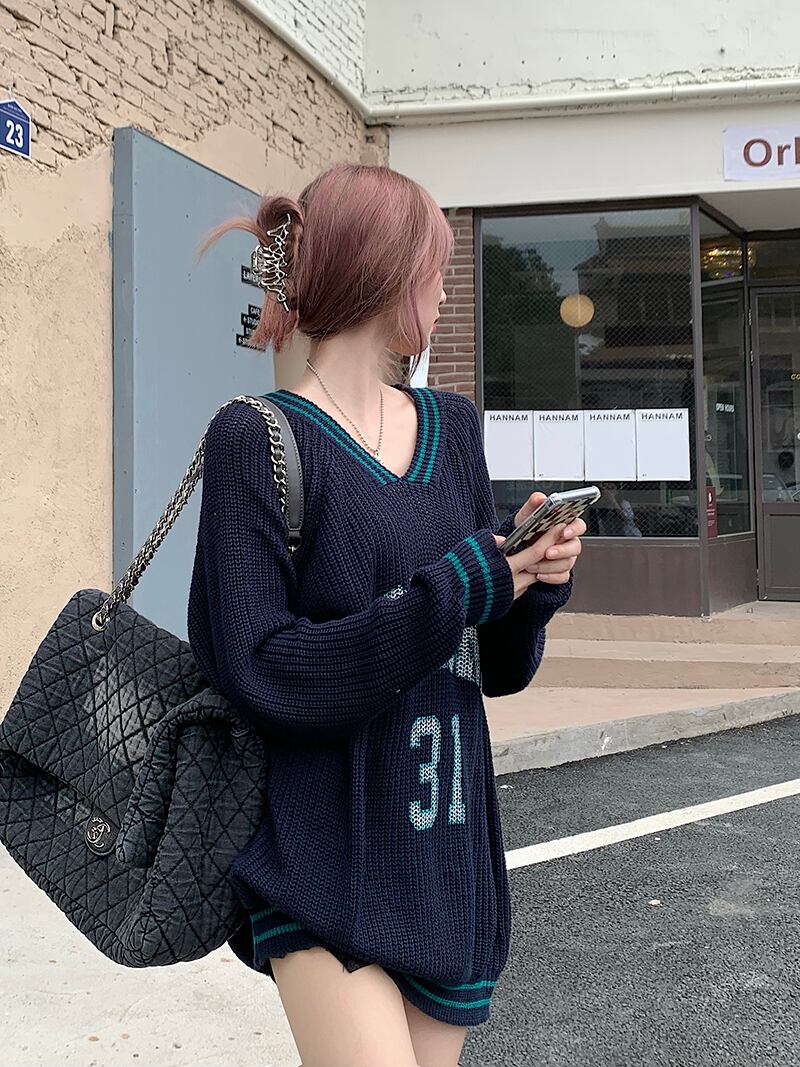 Vネックニットセーター オータム薄手コート トップス ロング 秋物 モンロー62772927799