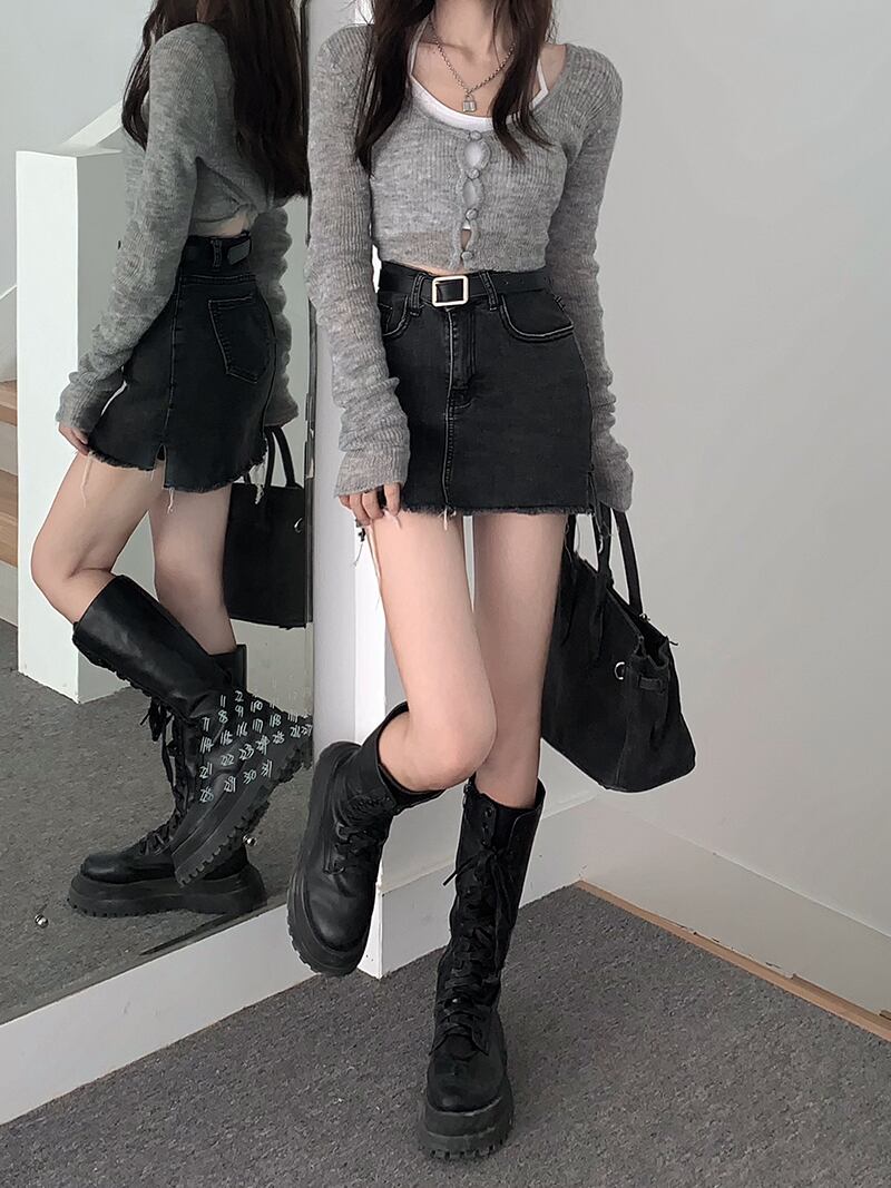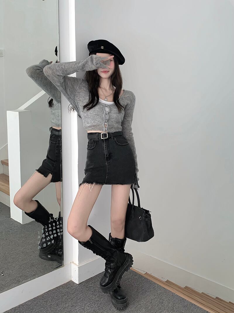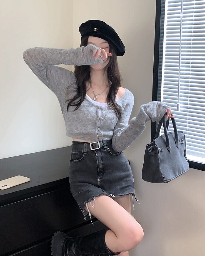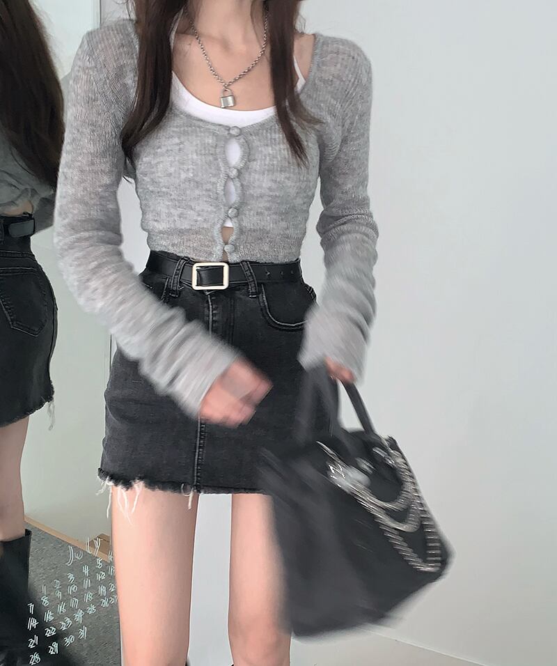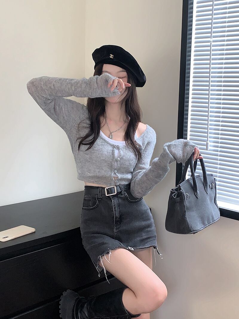 スリムニットカーディガンオータムショートシャツ ロング ストリート 秋物 モンロー59518319265
