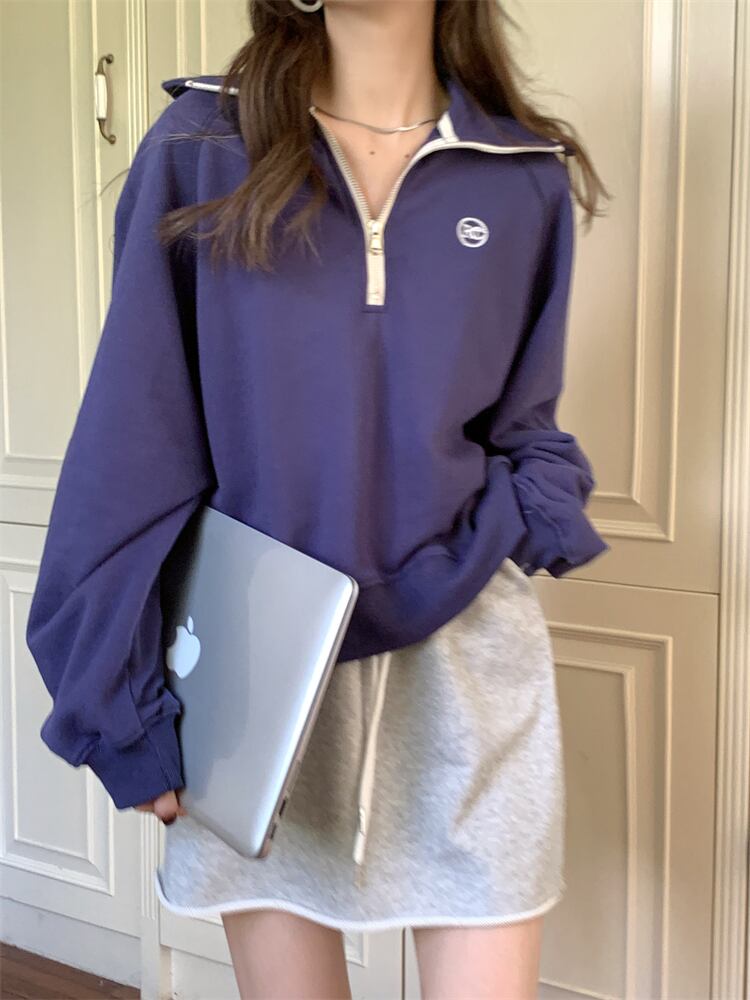 ルーズカジュアルジッパーセーター ジャケット オータムスタイルトップス ロング 秋物 モンロー89345912302