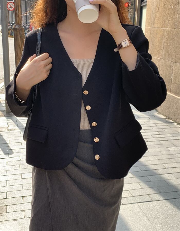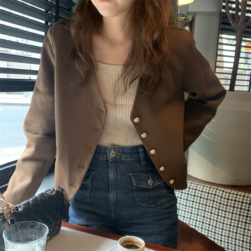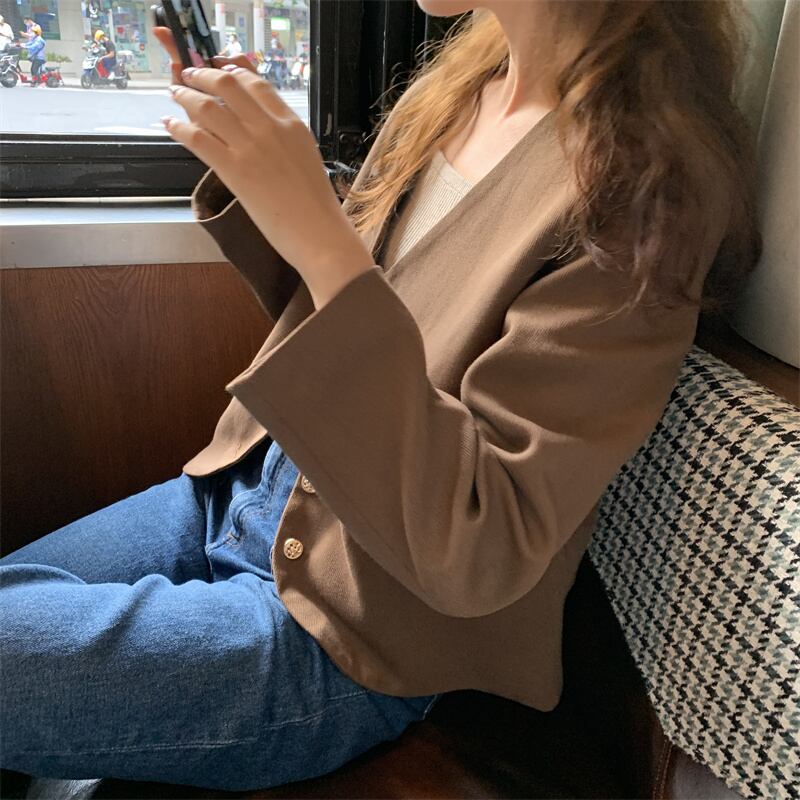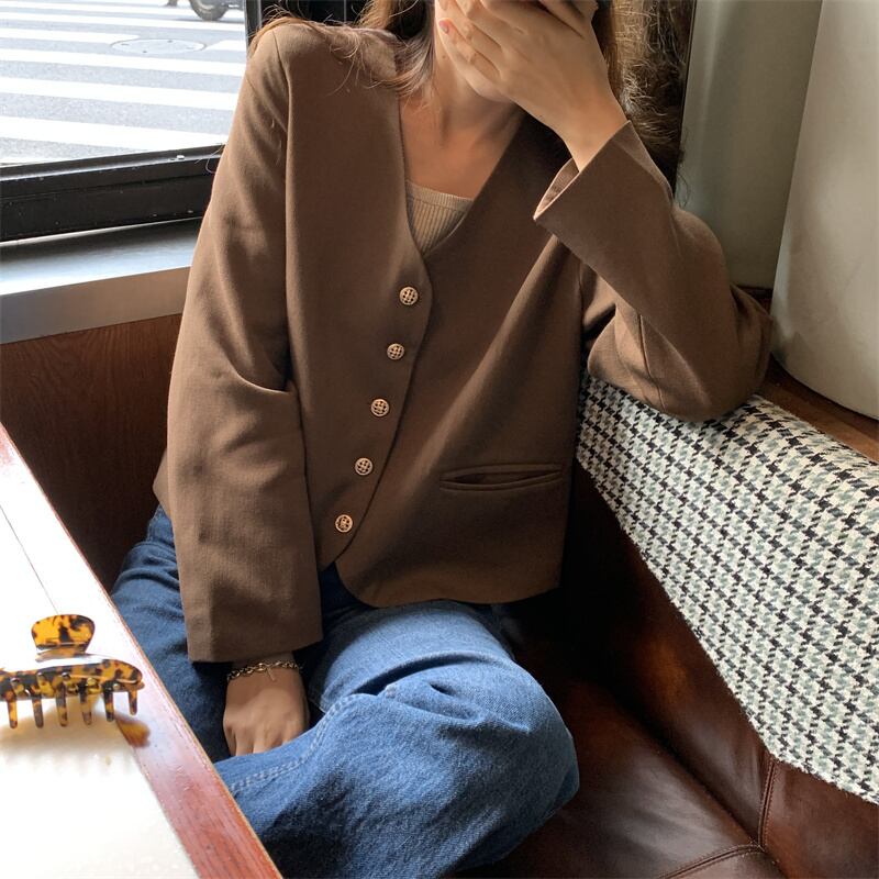 Vネックジャケット オータムブラウントップス ロング 秋物 モンロー57840483764