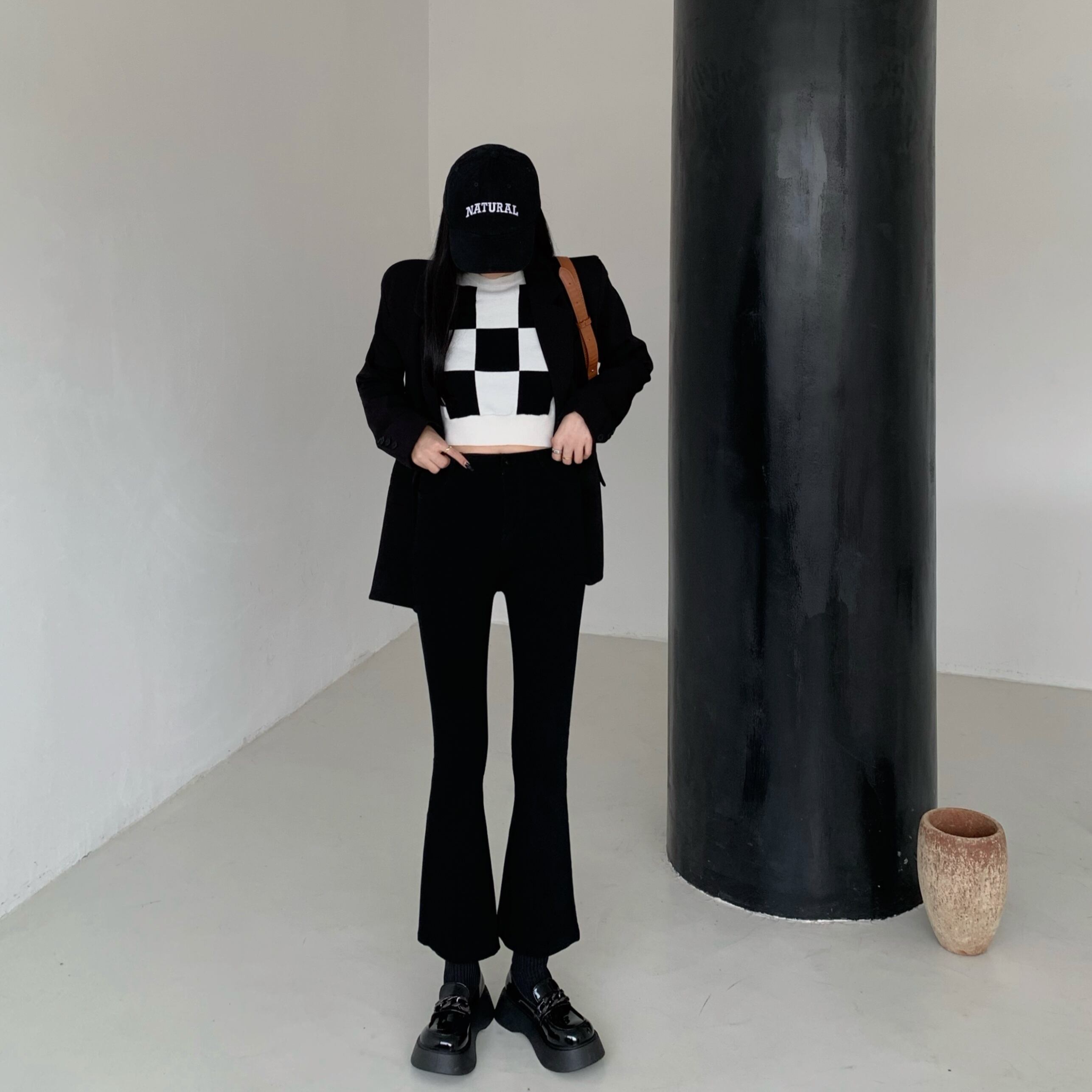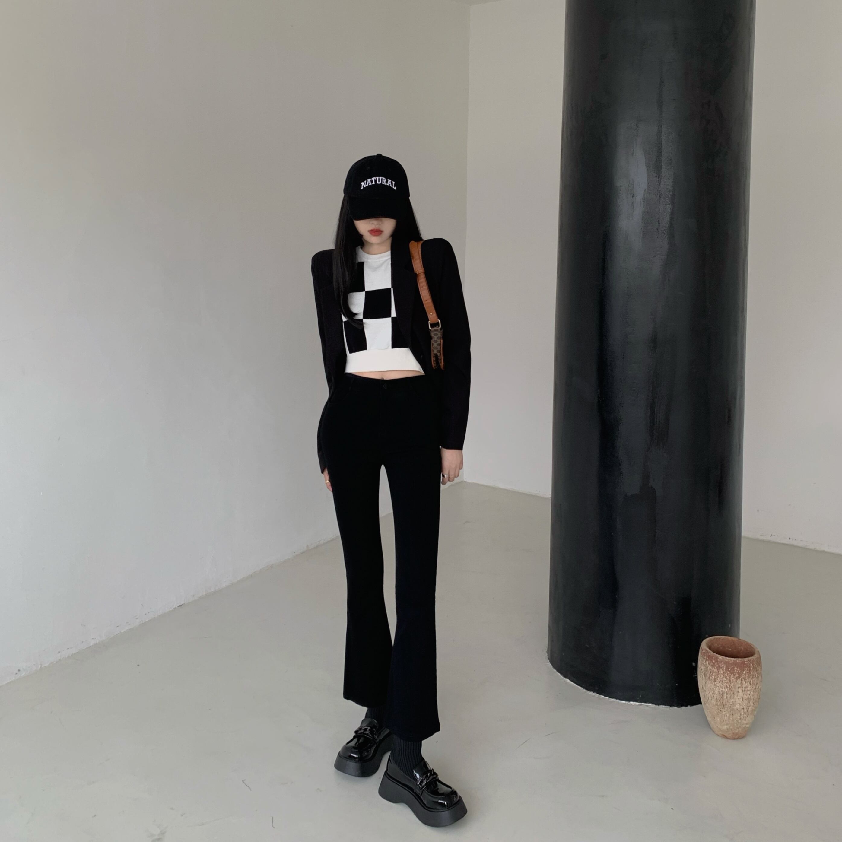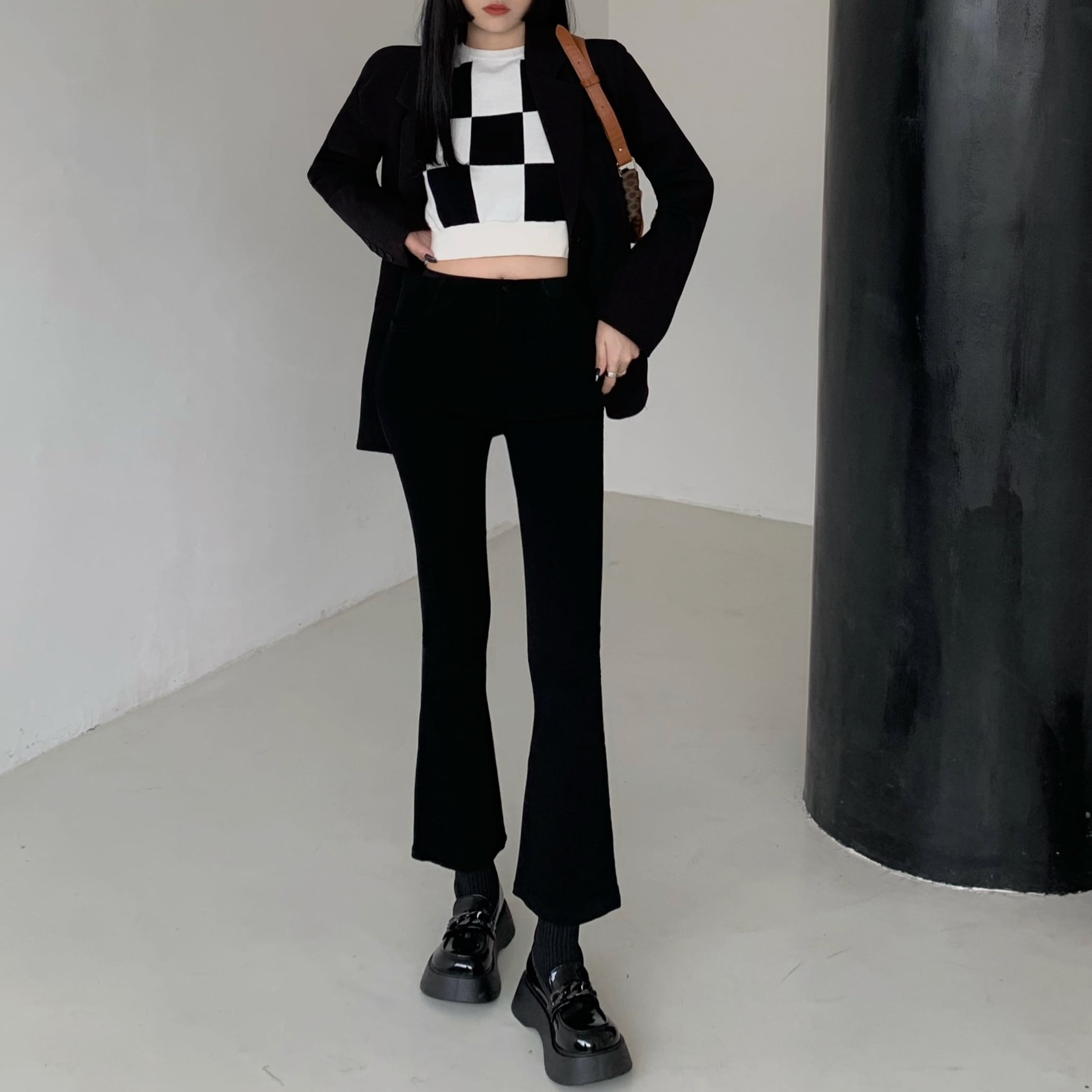 ブラックスリムカジュアルパンツ スプリングオータムハイウェスト レッド 春物 秋物 モンロー1176212341