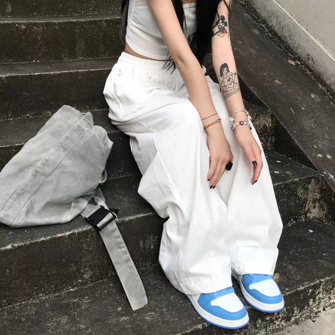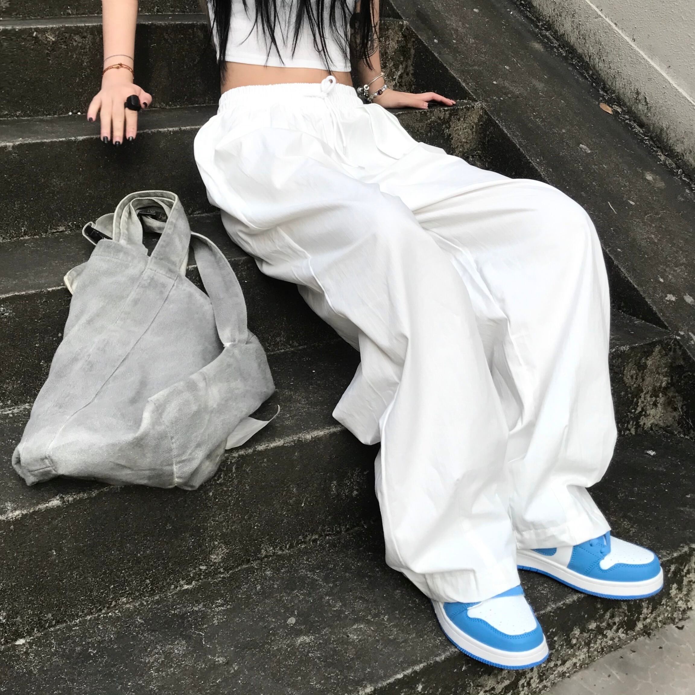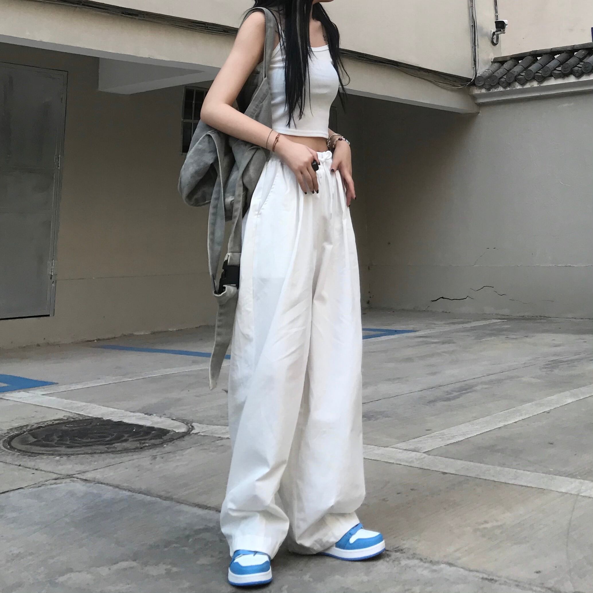 ホワイトカジュアルパンツ スプリングオータム薄手ハイウェストウェストルーズ 春物 秋物 モンロー74193262084
