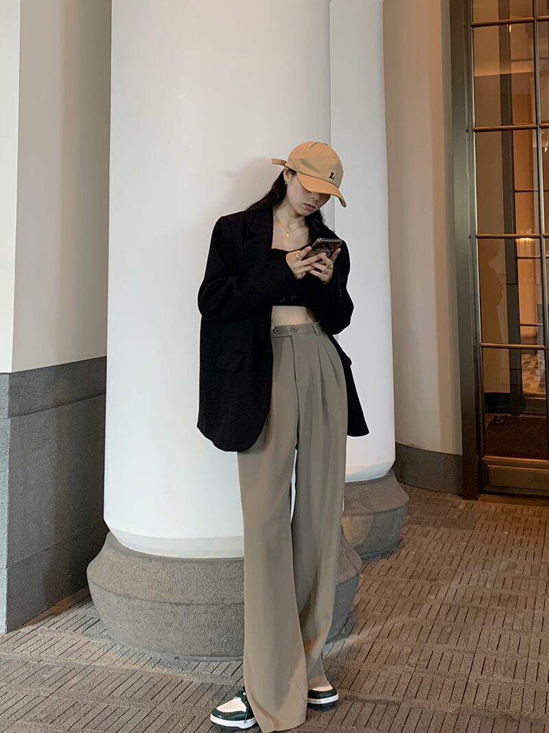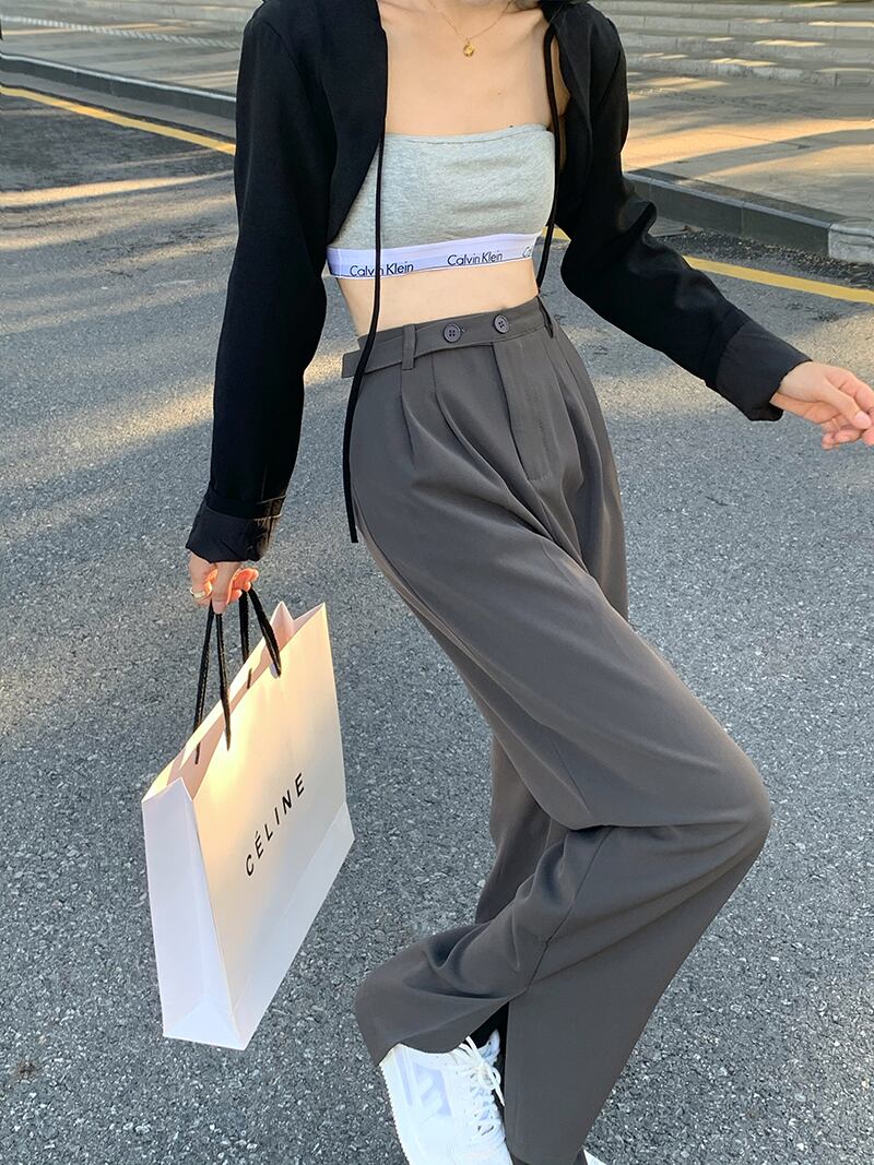 ハイウェストウェストパンツ スプリングオータムルーズワイドレッグ 春物 秋物 ワイドパンツ モンロー9538999134