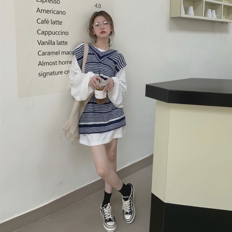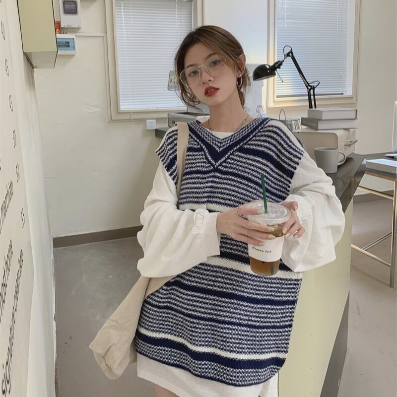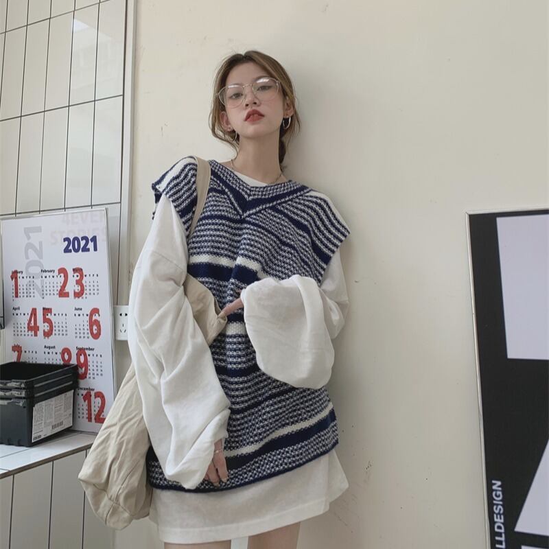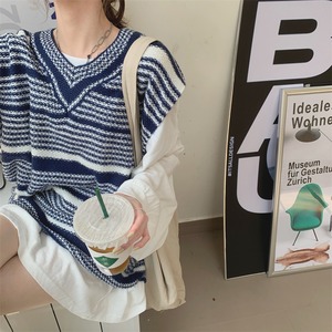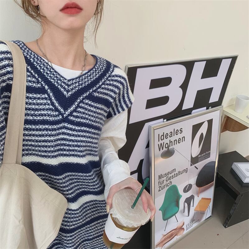 スタンダードスタイルルーズオータムVネックストライプカジュアルジャケット レトロ 秋物 モンロー14186681496
