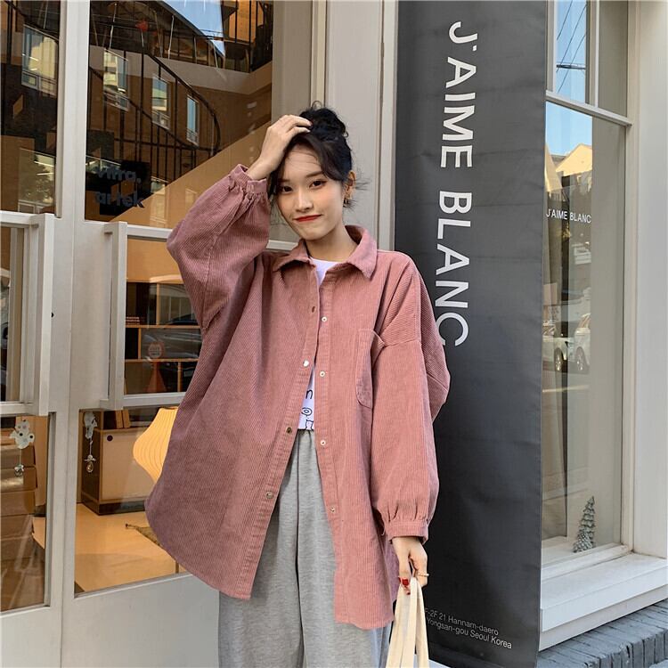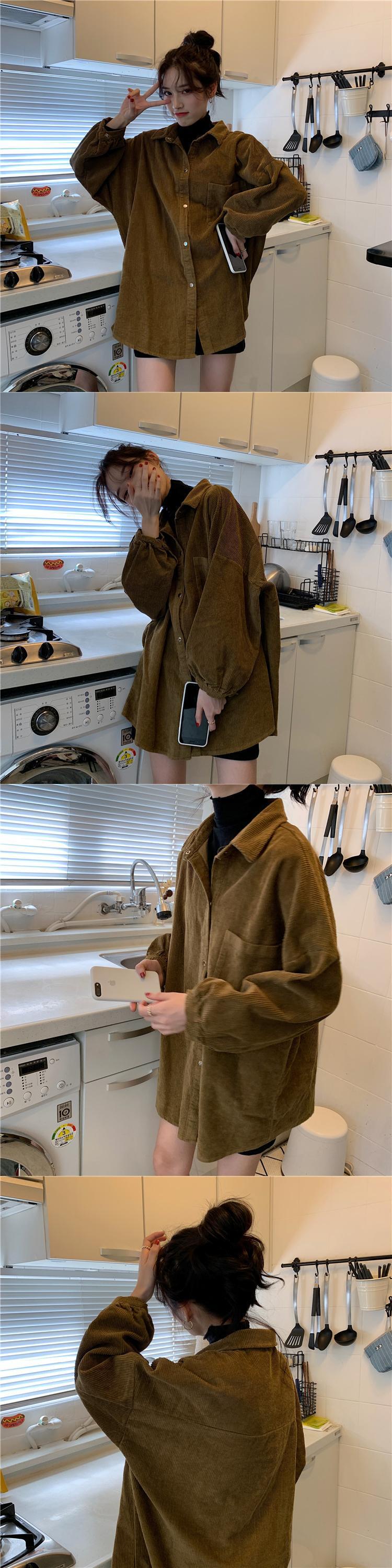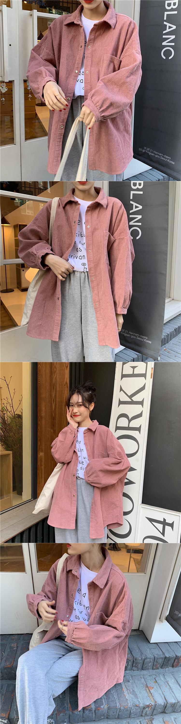 スタイルルーズコーデュロイシャツ オータムジャケット ロング 秋物 モンロー82757043167