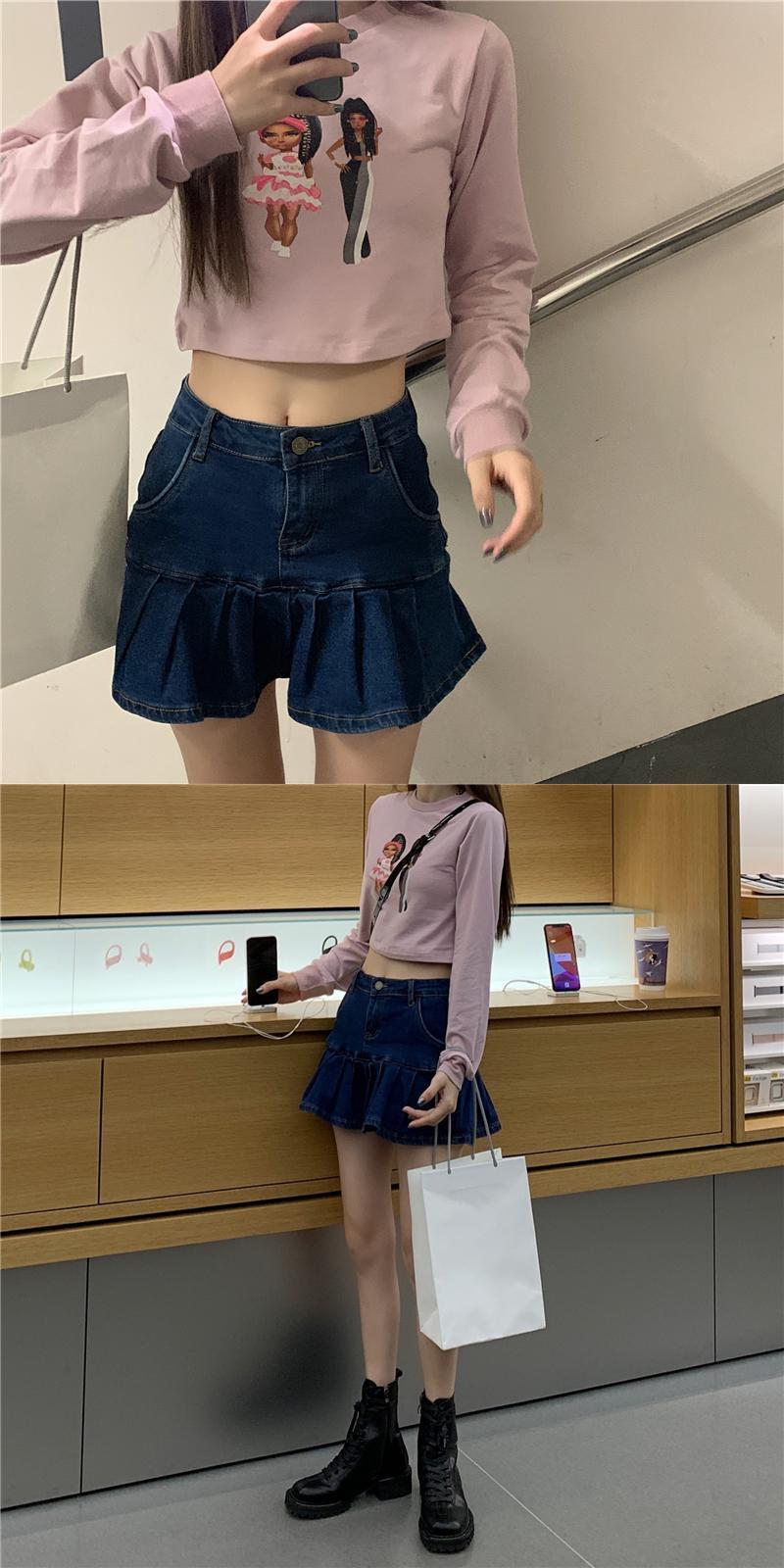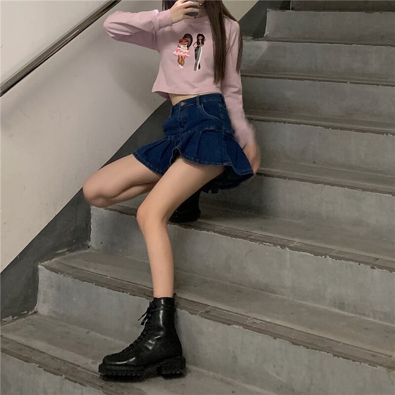サイズ:薄い籐の粉のセーター361,デニムスカートS362,デニムスカートM362,デニムスカートL362