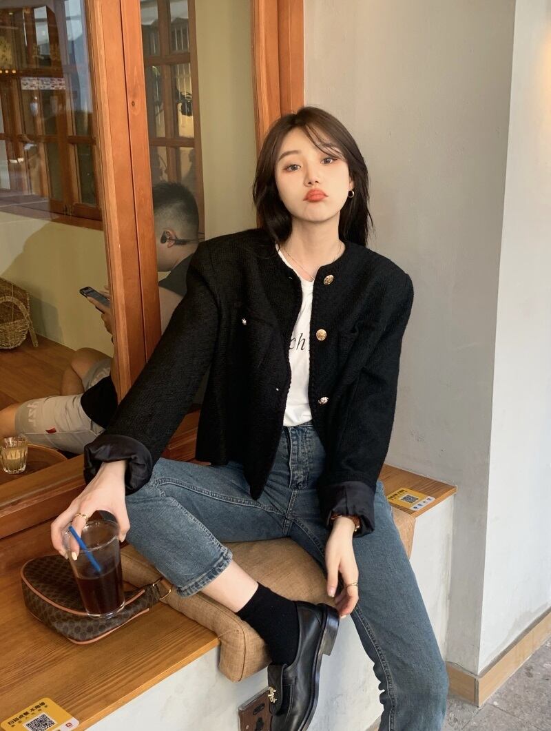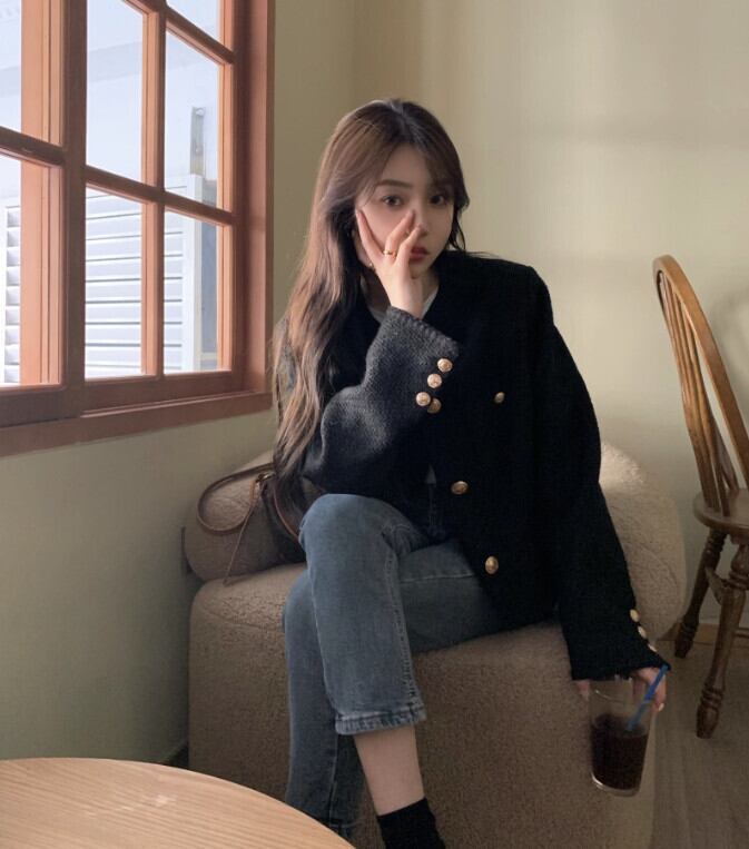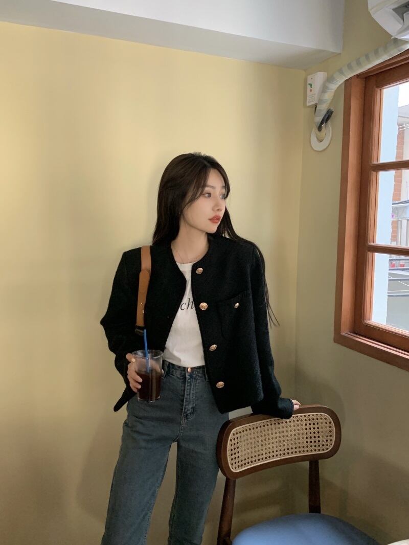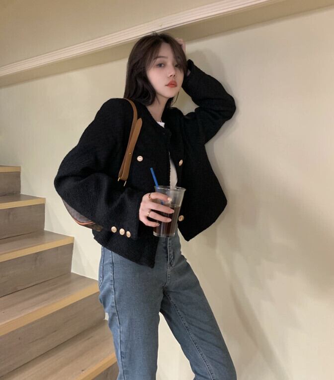 スリムカーディガンジャケット オータムショートブラック ロング 秋物 モンロー40202670013