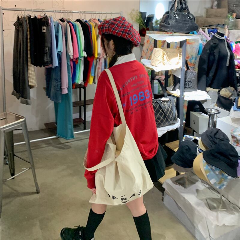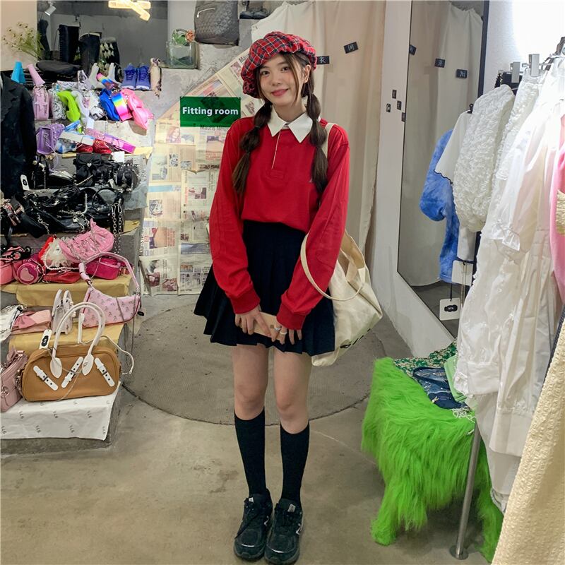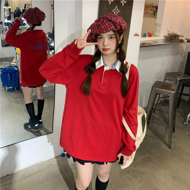 スタンダードレッドセーター オータムバックプリントプルオーバー トップス ロング レトロ ストリート 秋物 モンロー64265687571