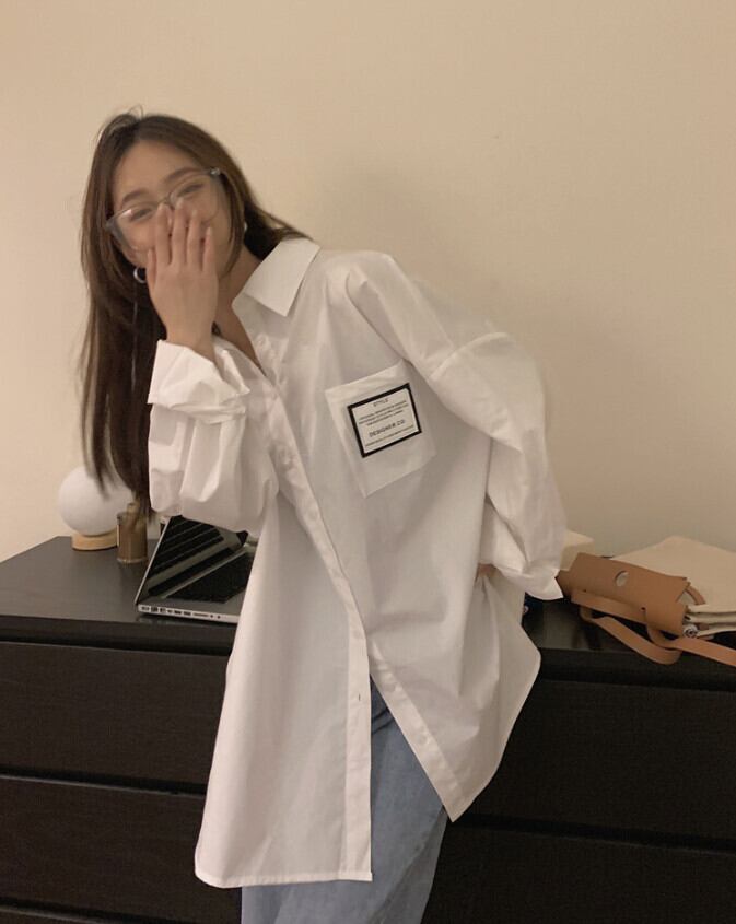 ルーズシャツ トップス オータムホワイトカジュアルジャケット ロング 秋物 モンロー96189120842