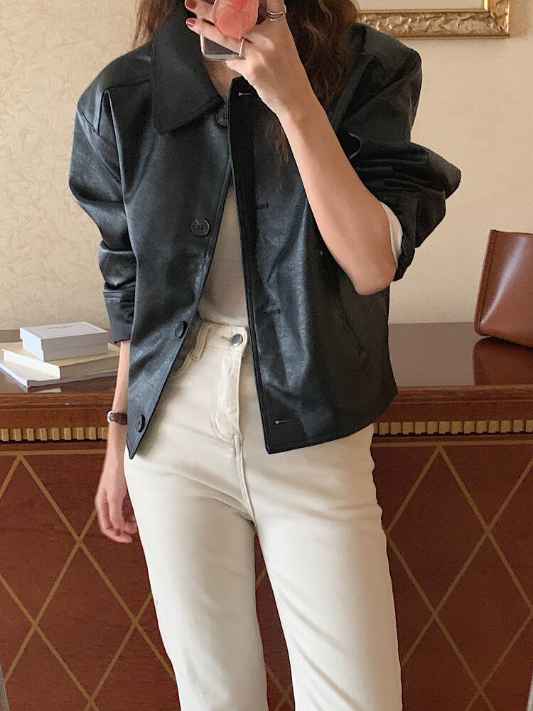 ブラックレザージャケット オータムルーズ ロング 秋物 モンロー50178320628
