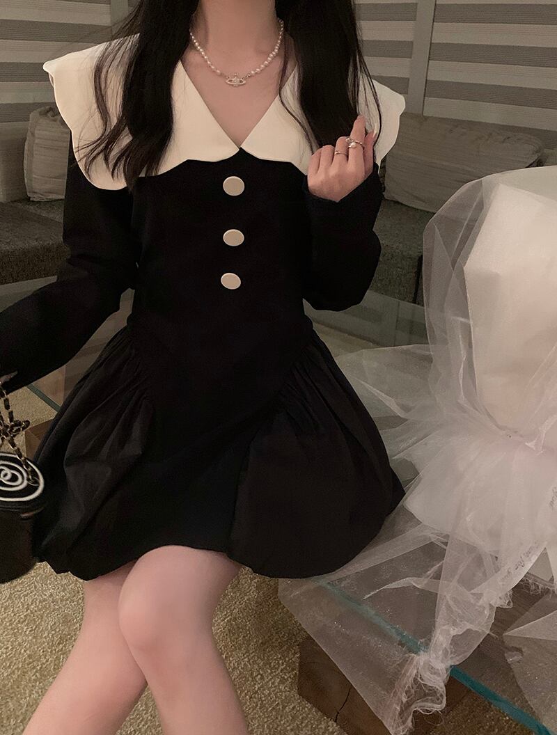 スタイルウェストドレス オータムブラックショートAラインスカート 秋物 モンロー36270895922