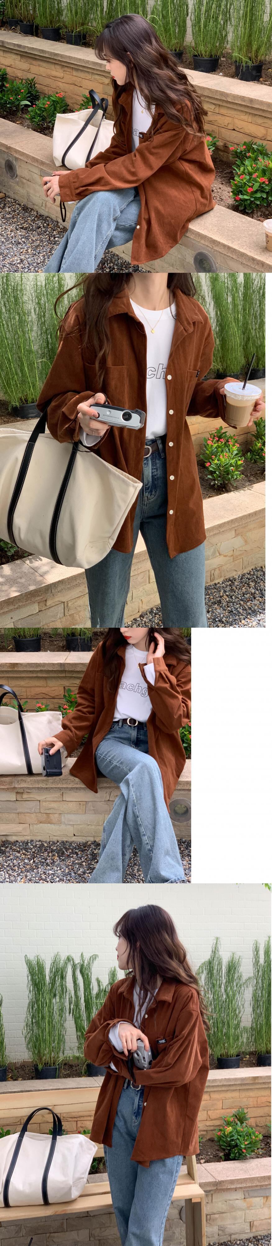 スタンダードコーデュロイシャツ オータムダークグリーン レトロ 秋物 モンロー32049573415
