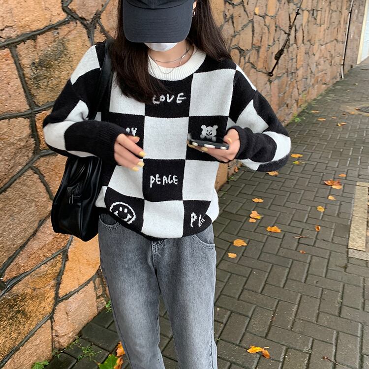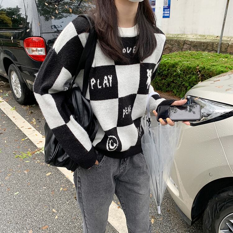 プルオーバー セーター オータムブラックホワイトニットトップス ロング 大人ガーリー スウィート キュート カジュアル 秋物 モンロー96305785222