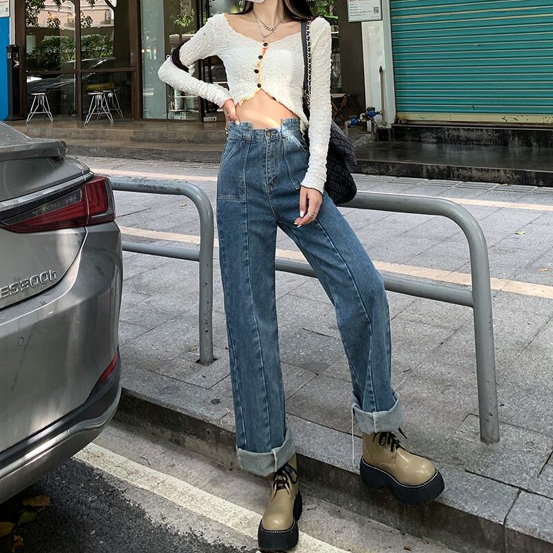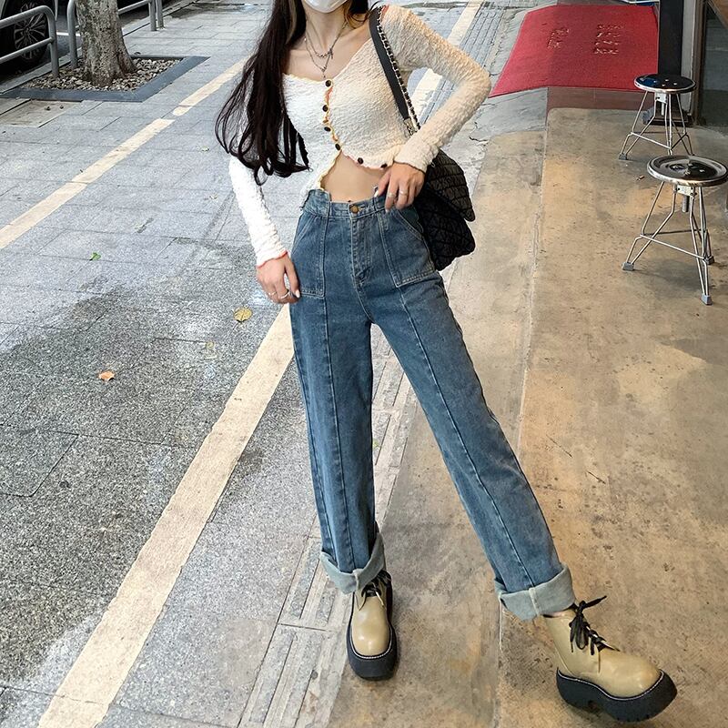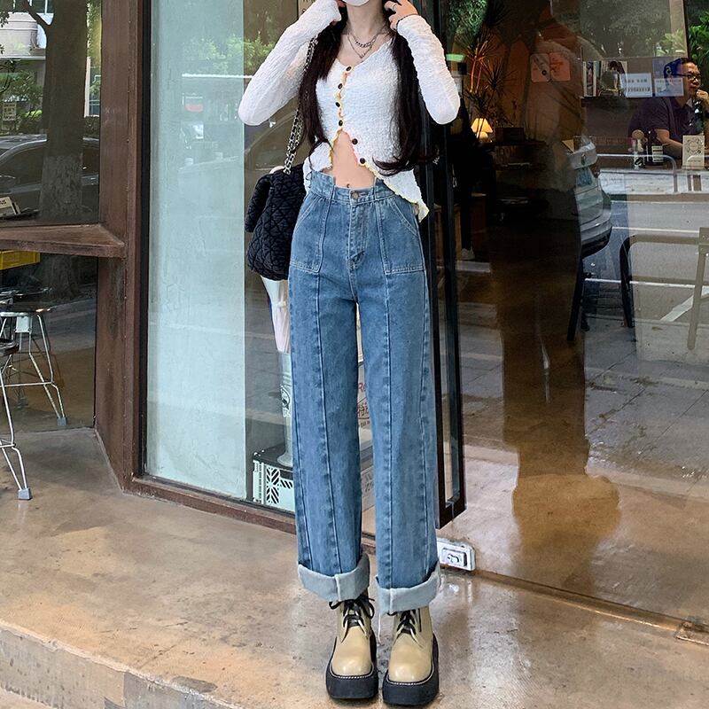 ジーンズ スプリングオータムハイウェスト薄手パンツ 春物 秋物 モンロー53601951966
