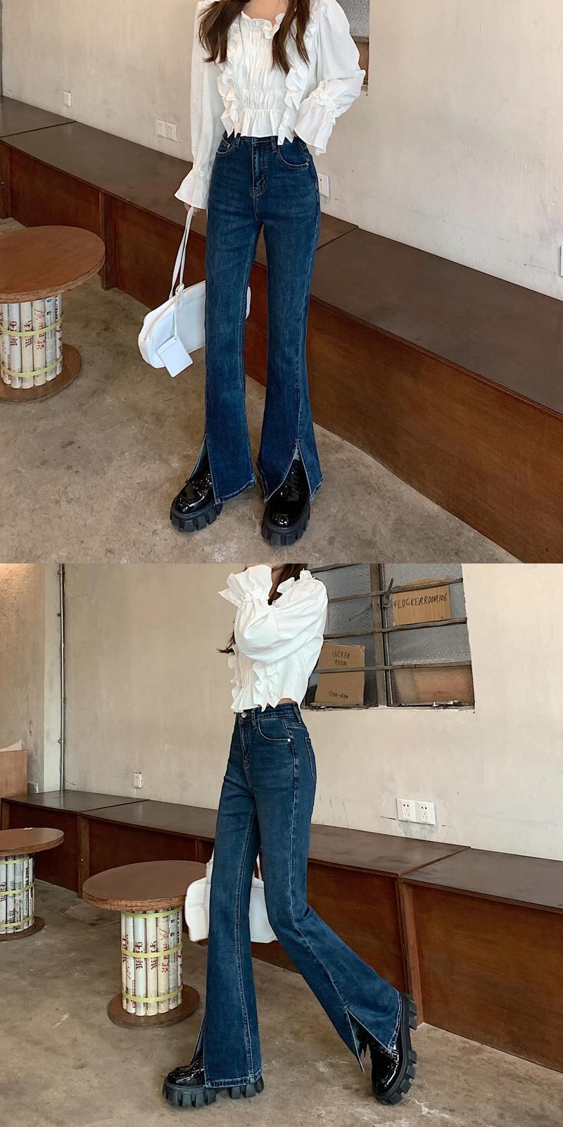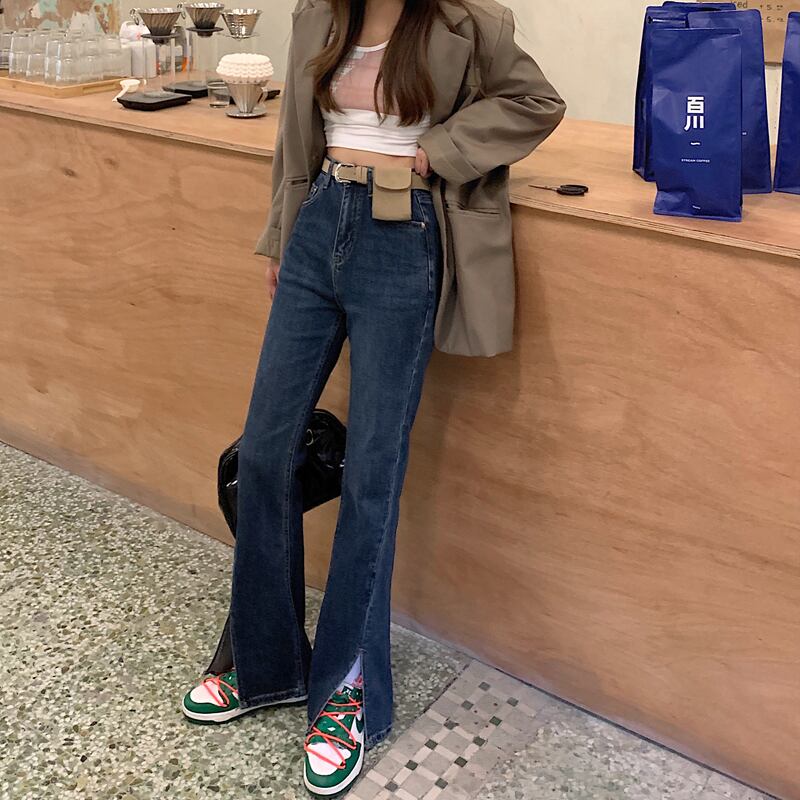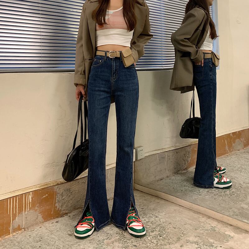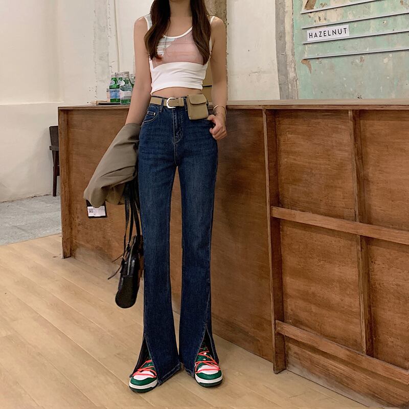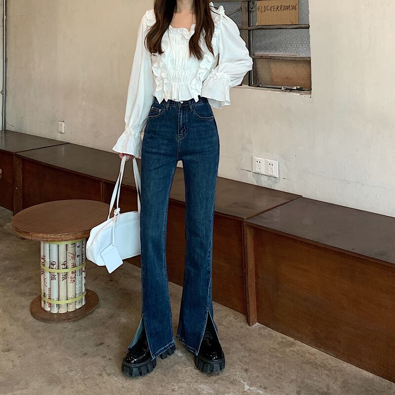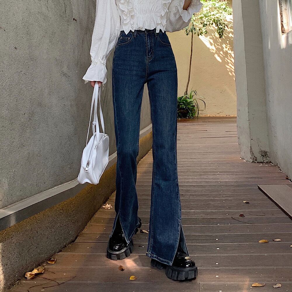 スタンダードダークブルーハイウェストウェストジーンズ レディーススプリングオータム薄手ルーズパンツ レトロ 春物 秋物 モンロー42921649012