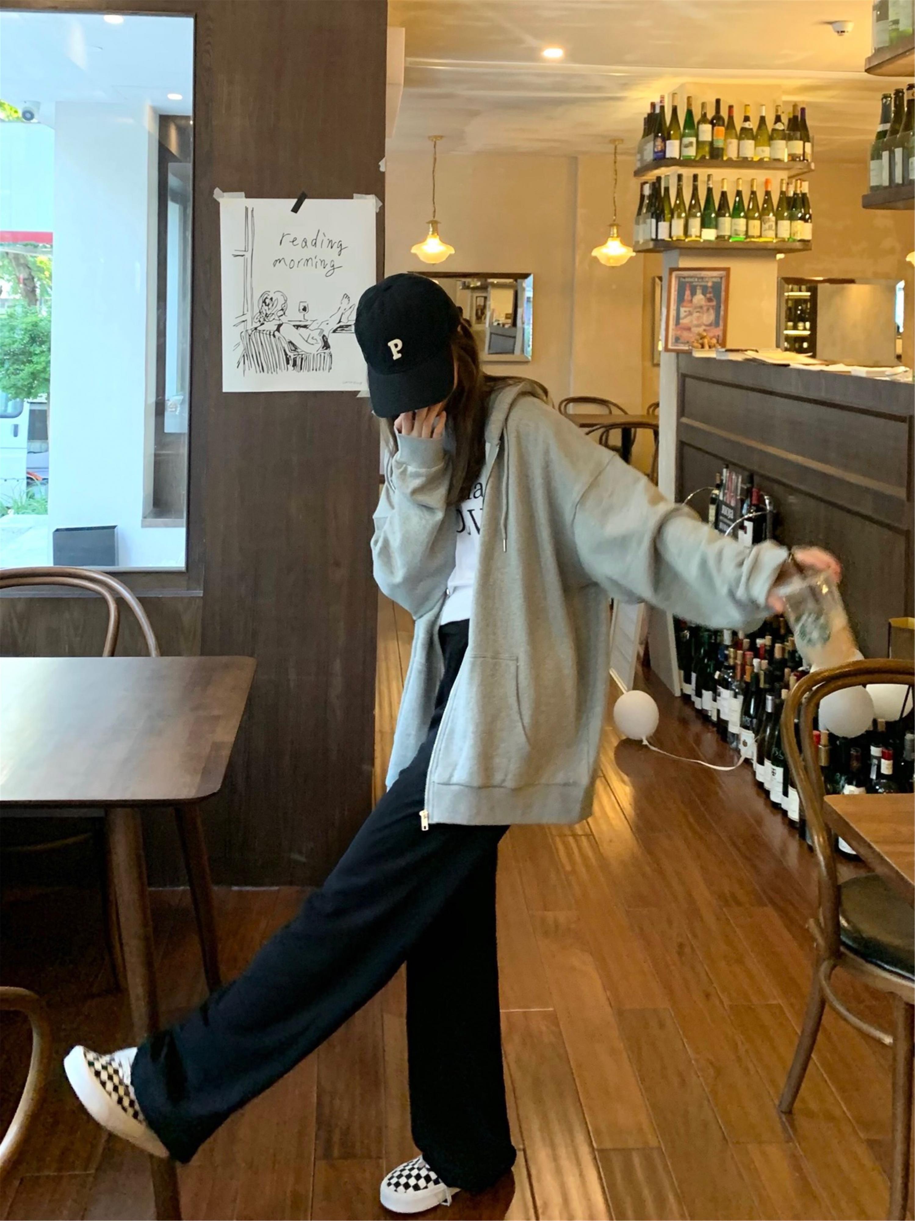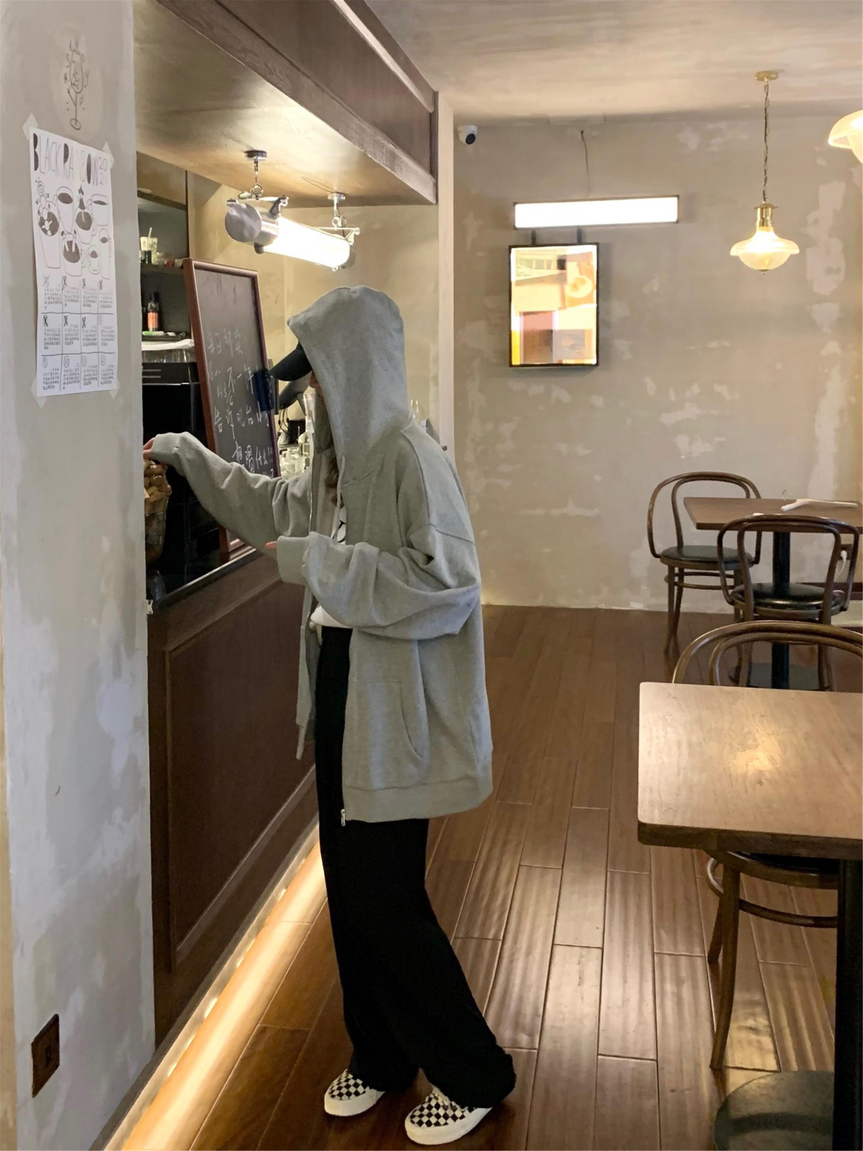 フードセーター ジャケット オータムブラックカジュアルシャツ ロング 秋物 モンロー29168910409