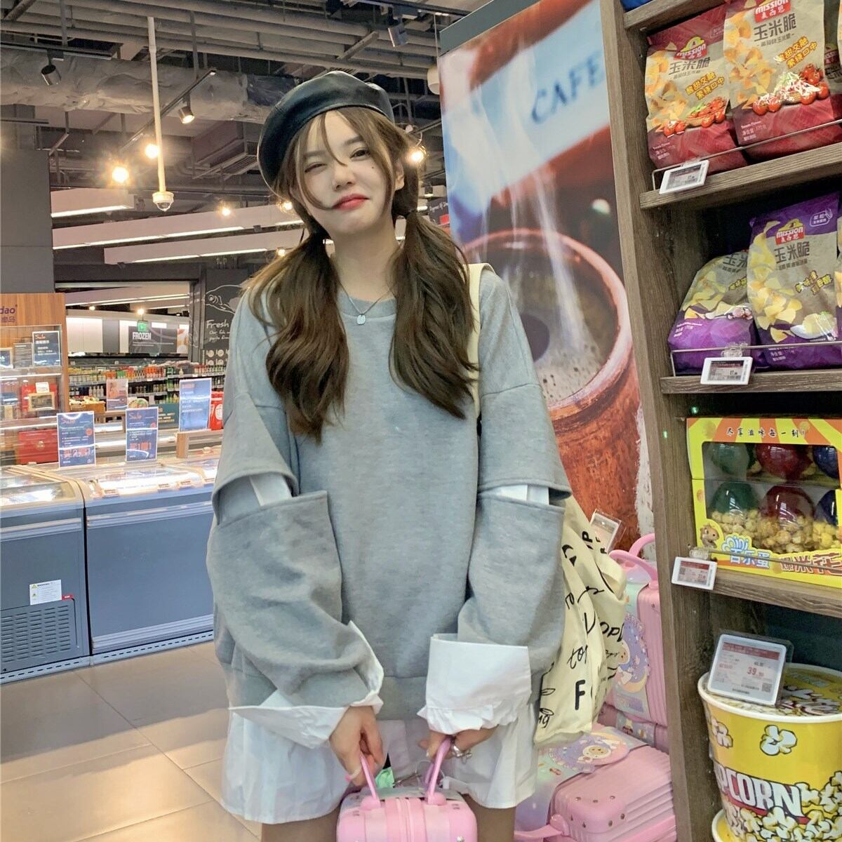ルーズセーター ジャケット オータムグレープルオーバー トップス ロング 秋物 ステッチ モンロー47698886939