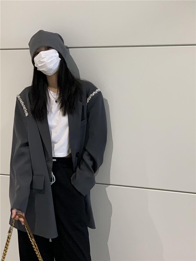 オータムルーズカジュアルジャケット ブラックギャザーパンツ 秋物 モンロー76552548313