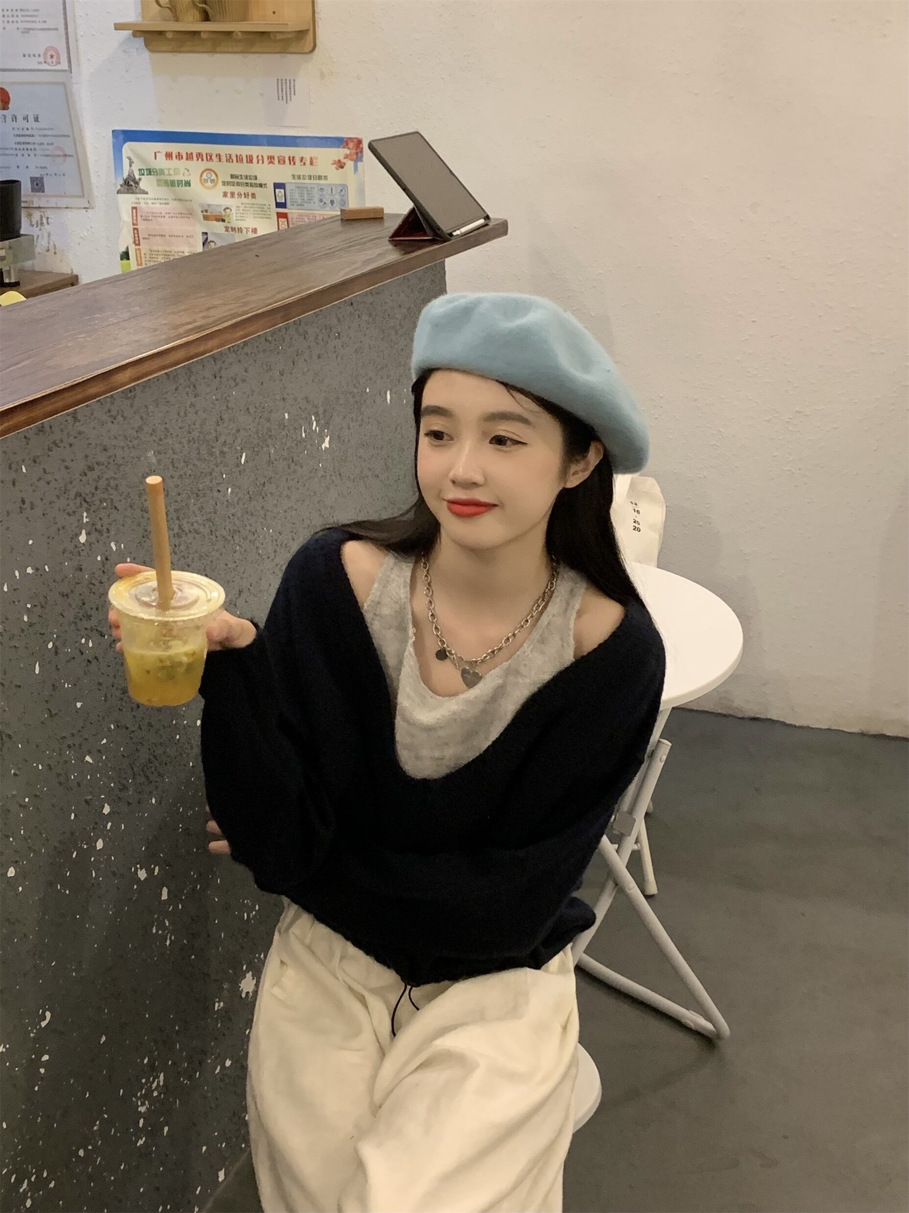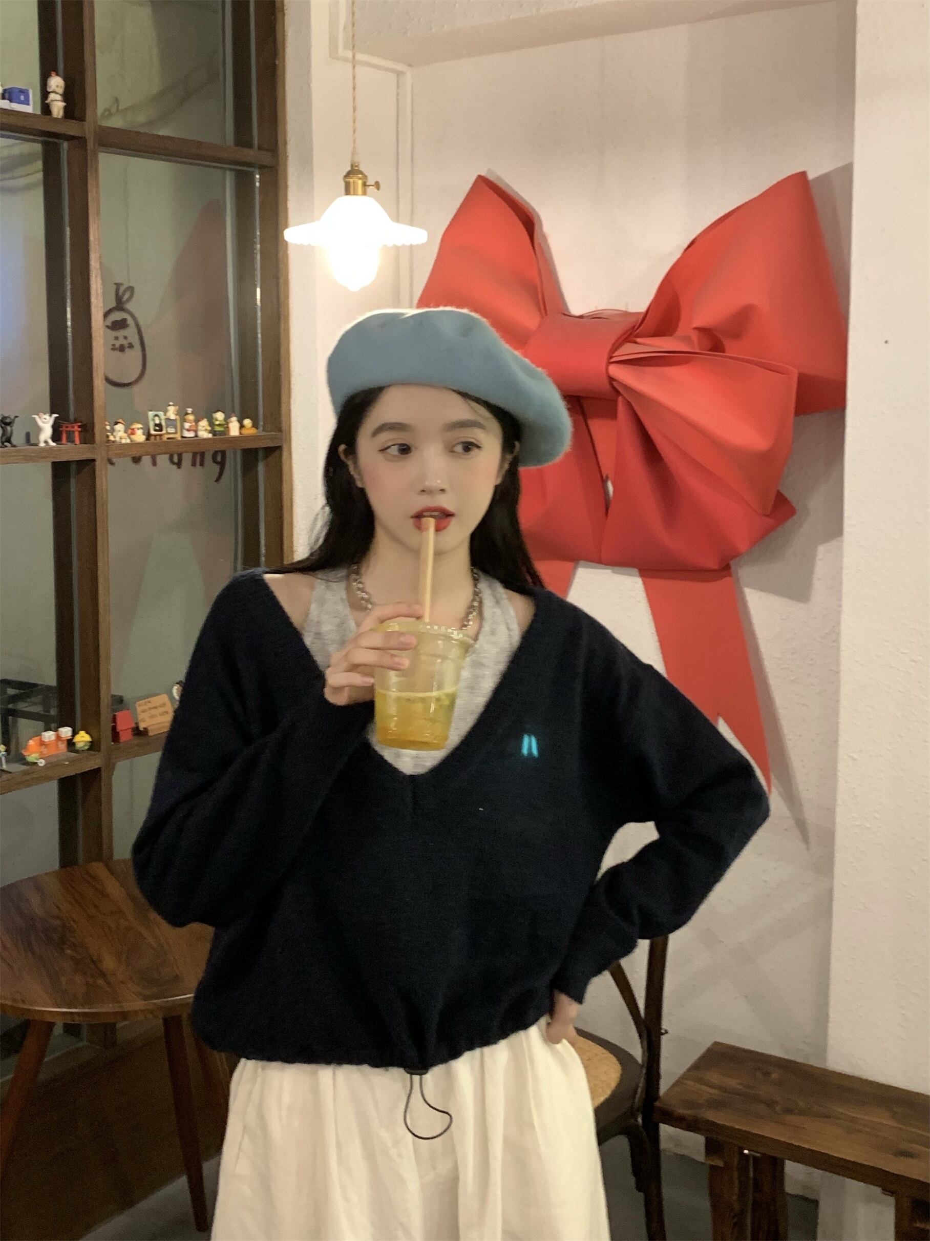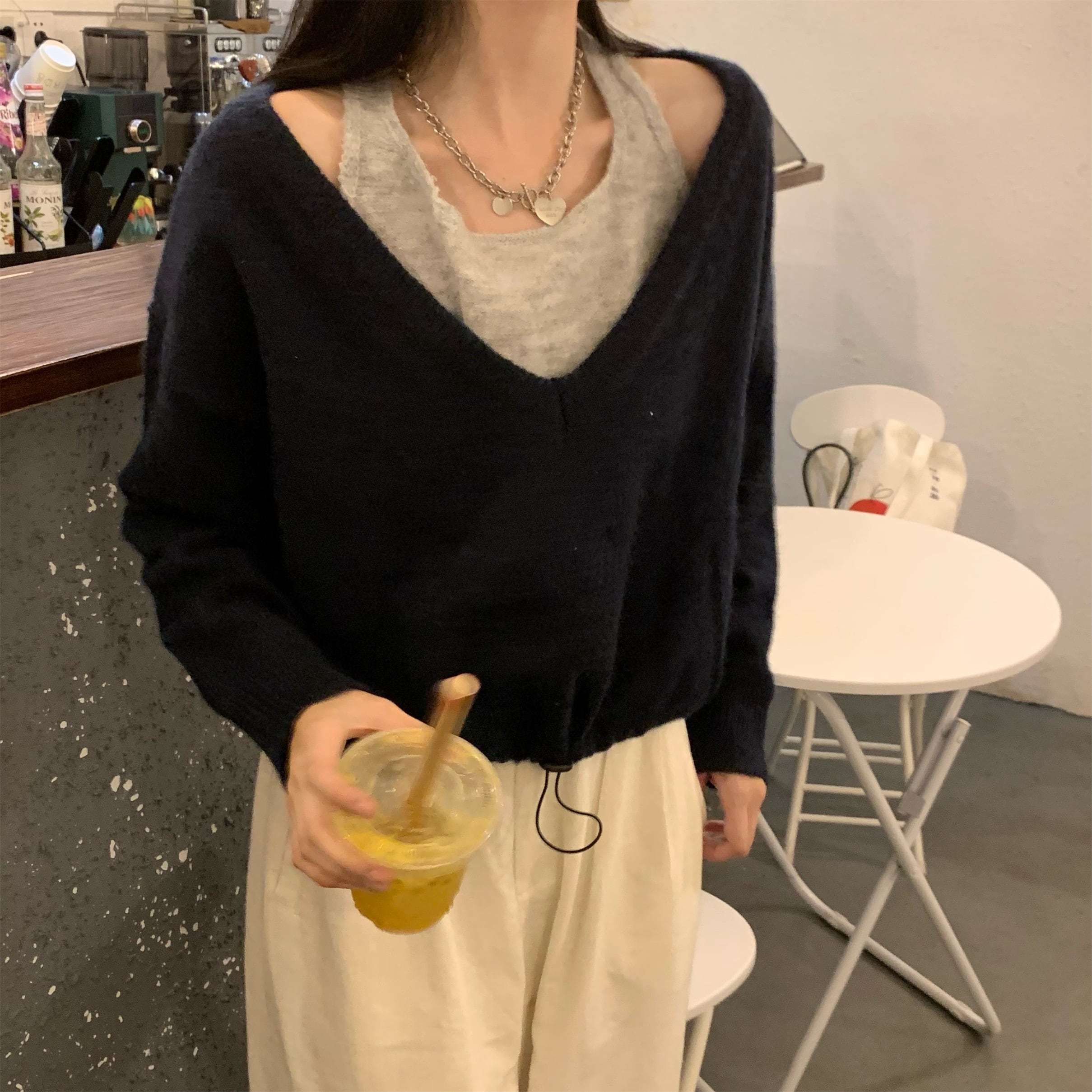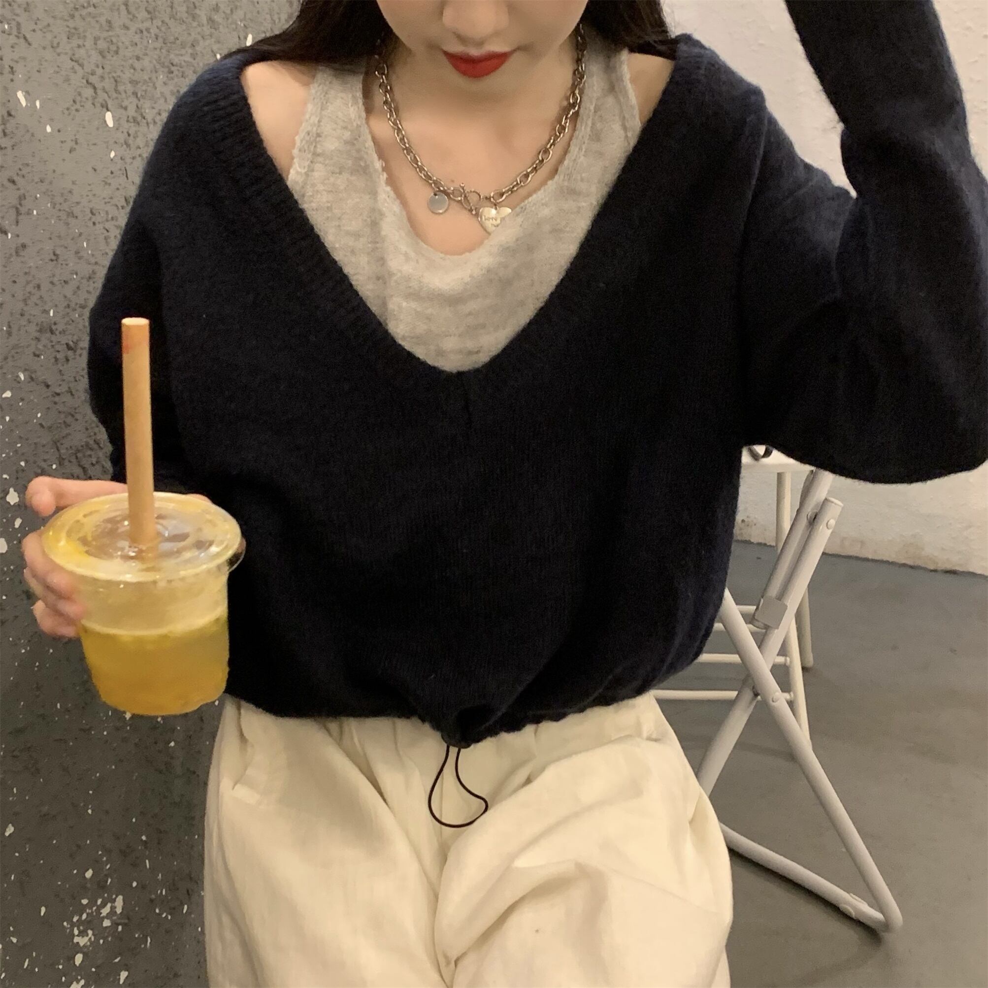 オータムドレス ストラップレスルーズ薄手ギャザーニットトップス 秋物 モンロー26927298287