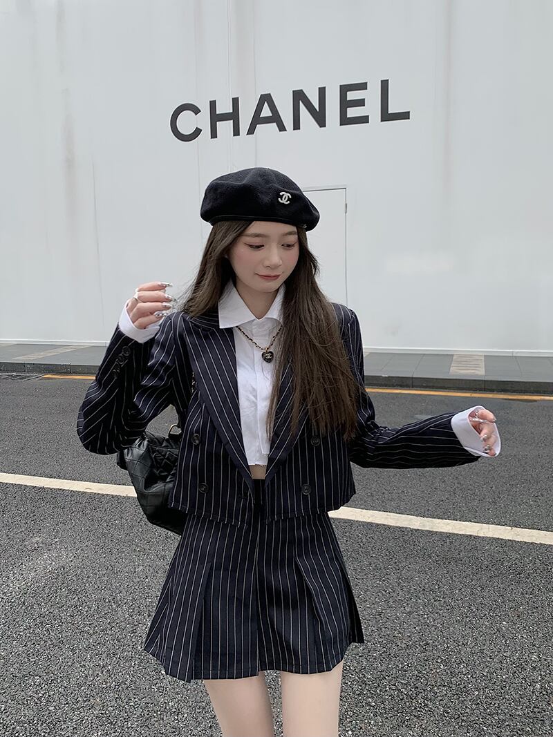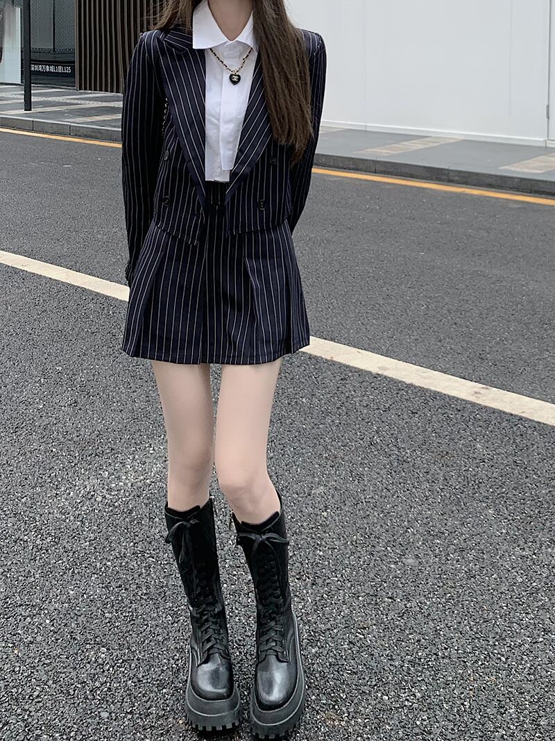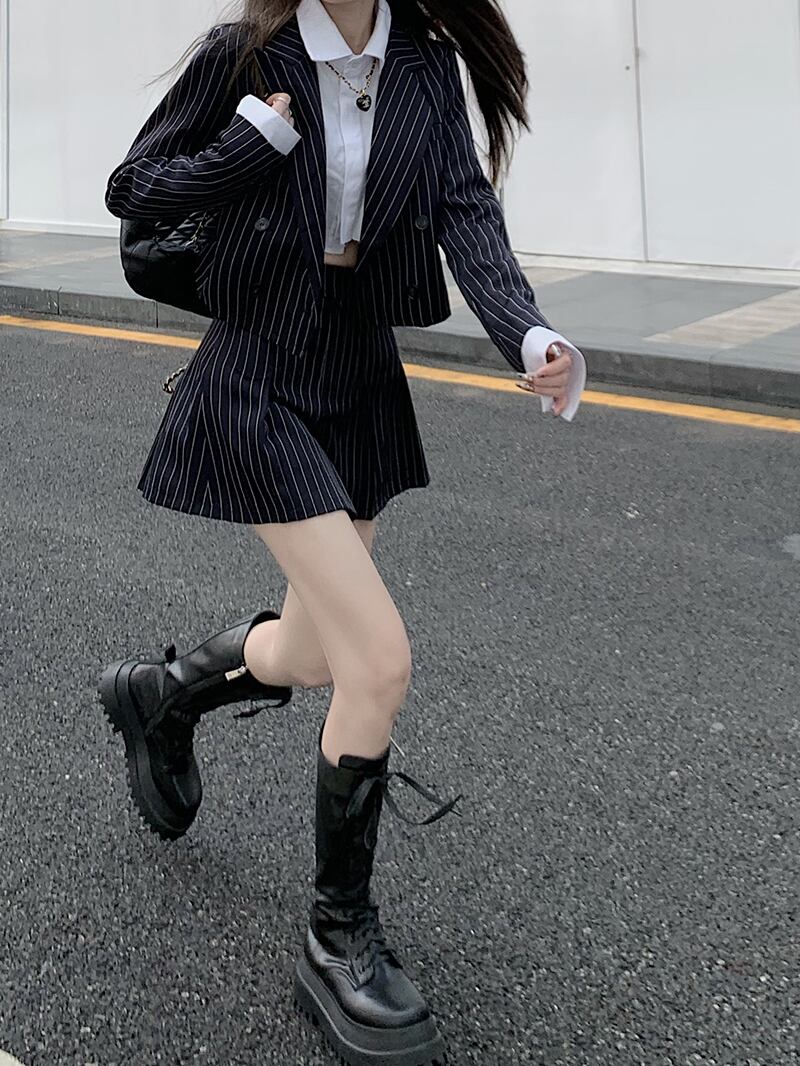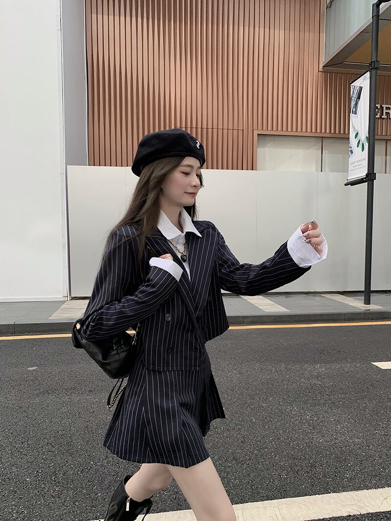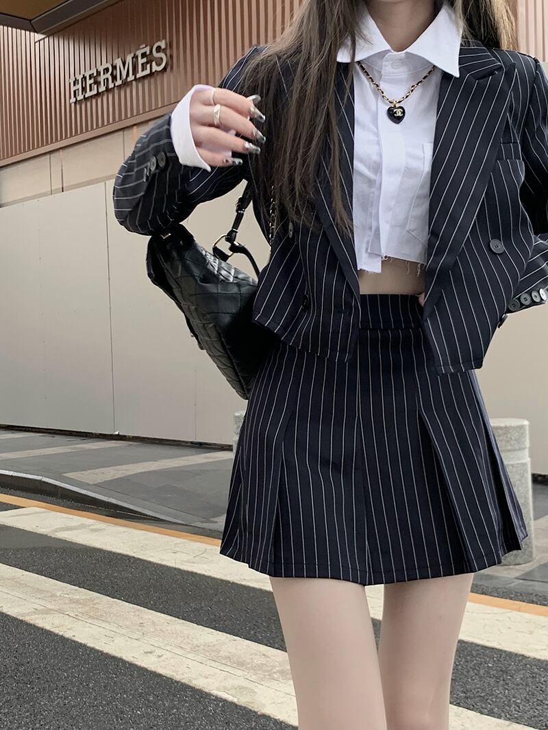 オータムショートジャケット ストライプスカート 秋物 モンロー8279261785
