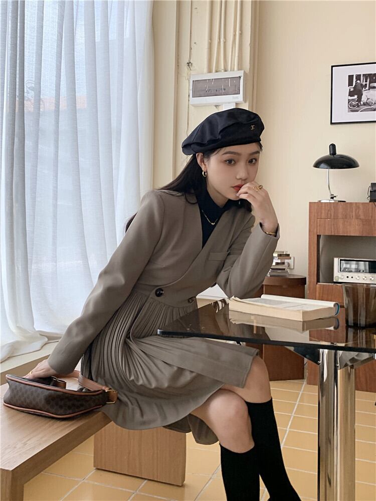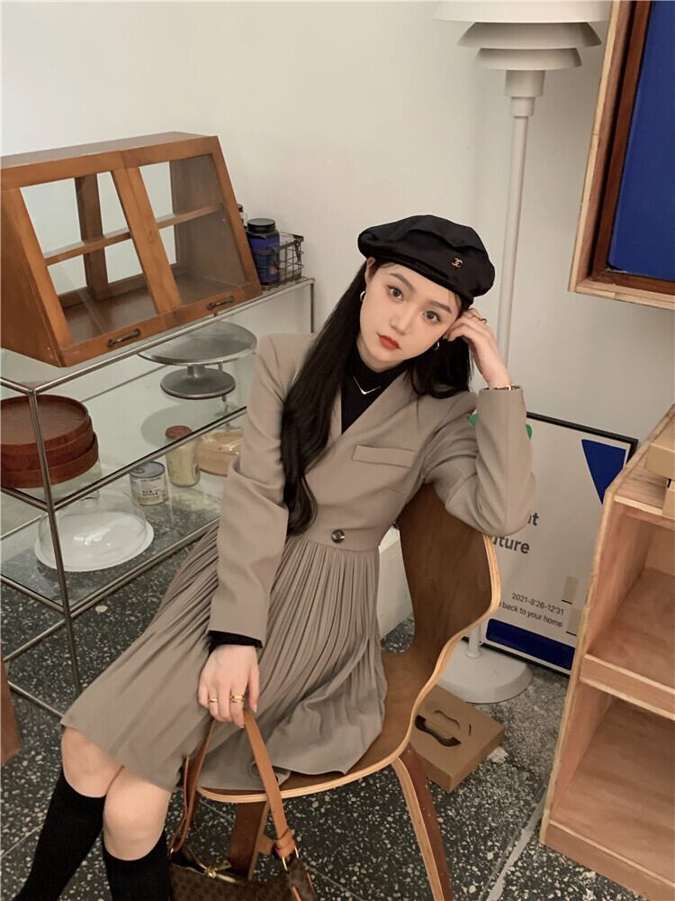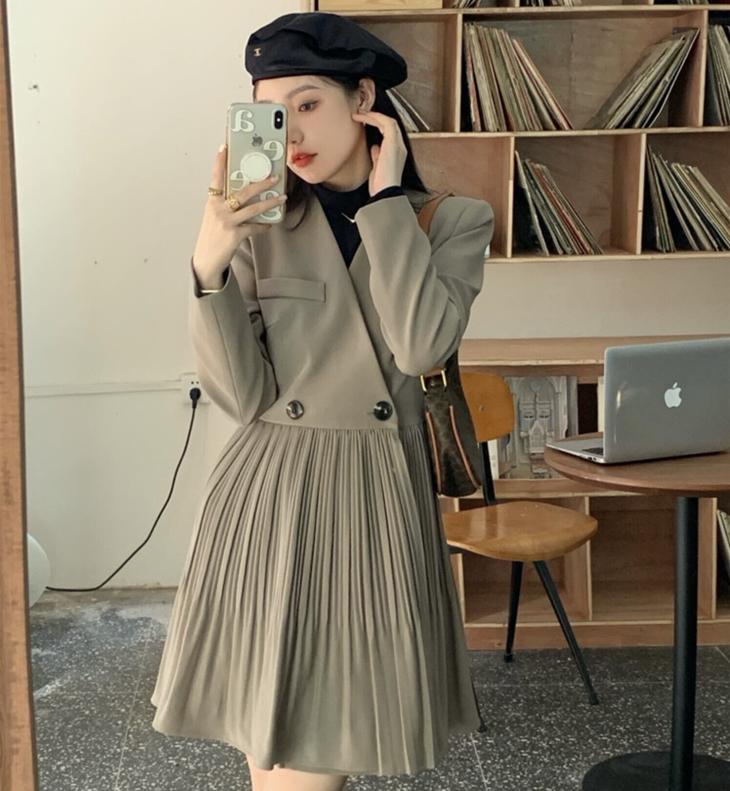 オータムプリーツスカート ドレス ロング 秋物 モンロー3499454909