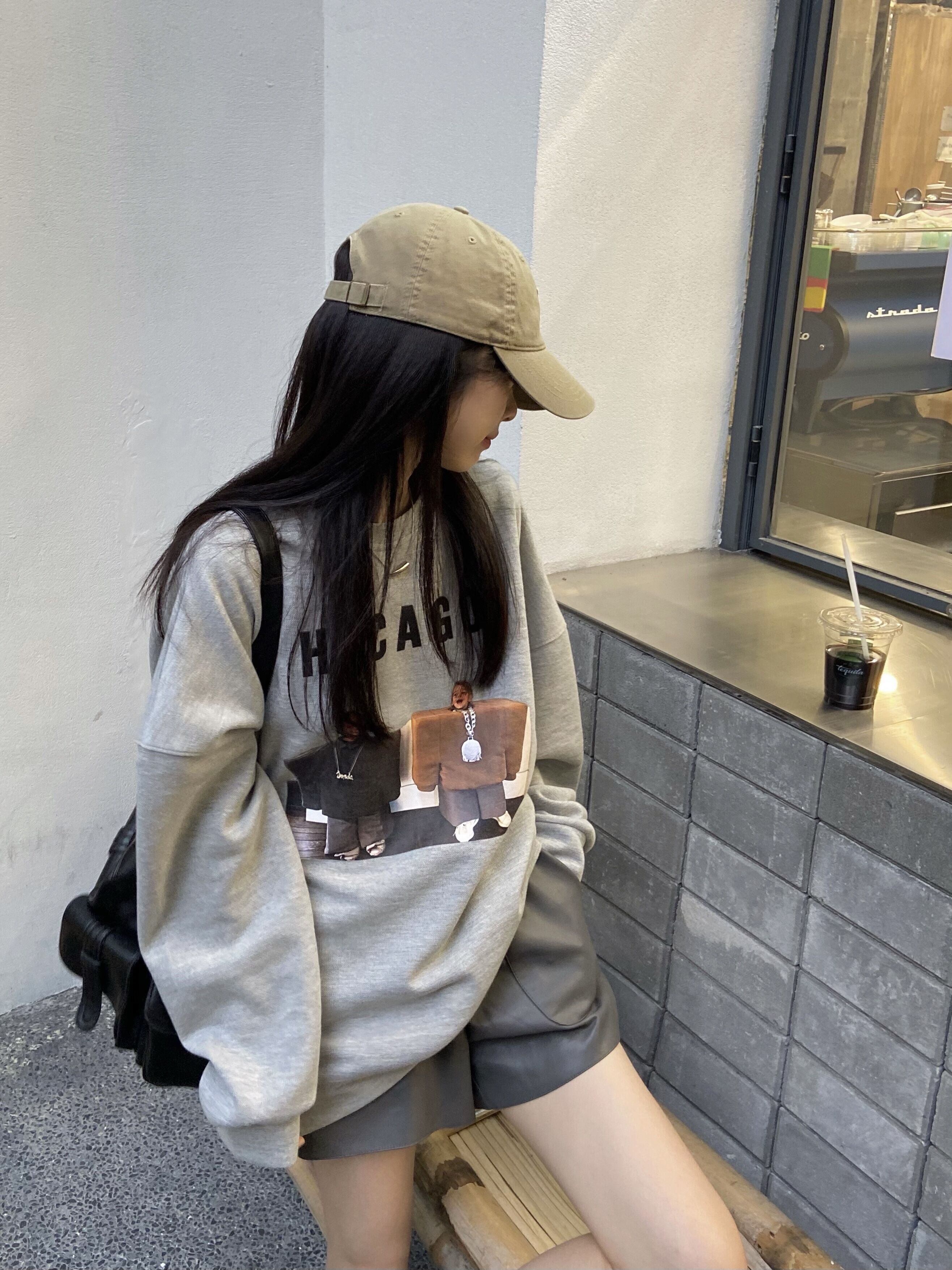 色:トレーナー,レザーパンツ