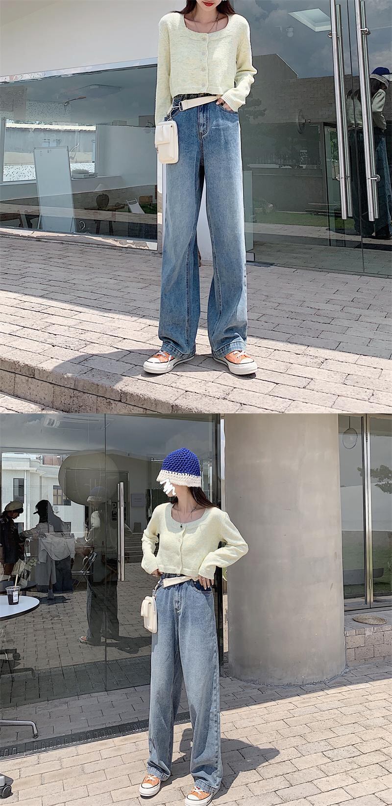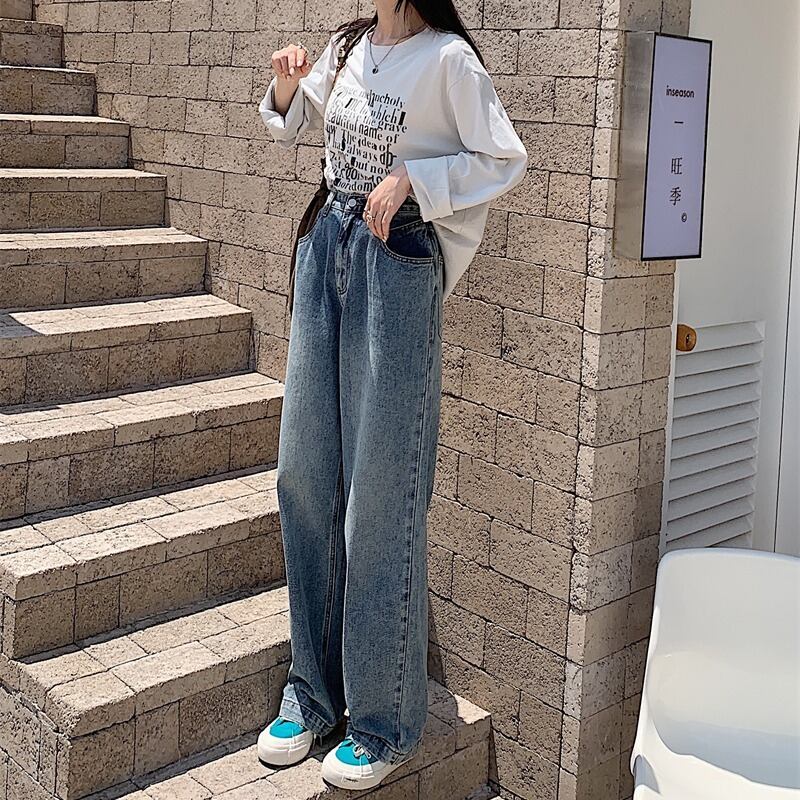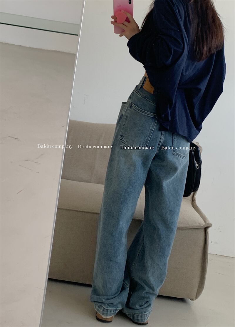 ウェストスリムジーンズ スプリングオータムスタンダードルーズパンツ レトロ 春物 秋物 モンロー57127013885