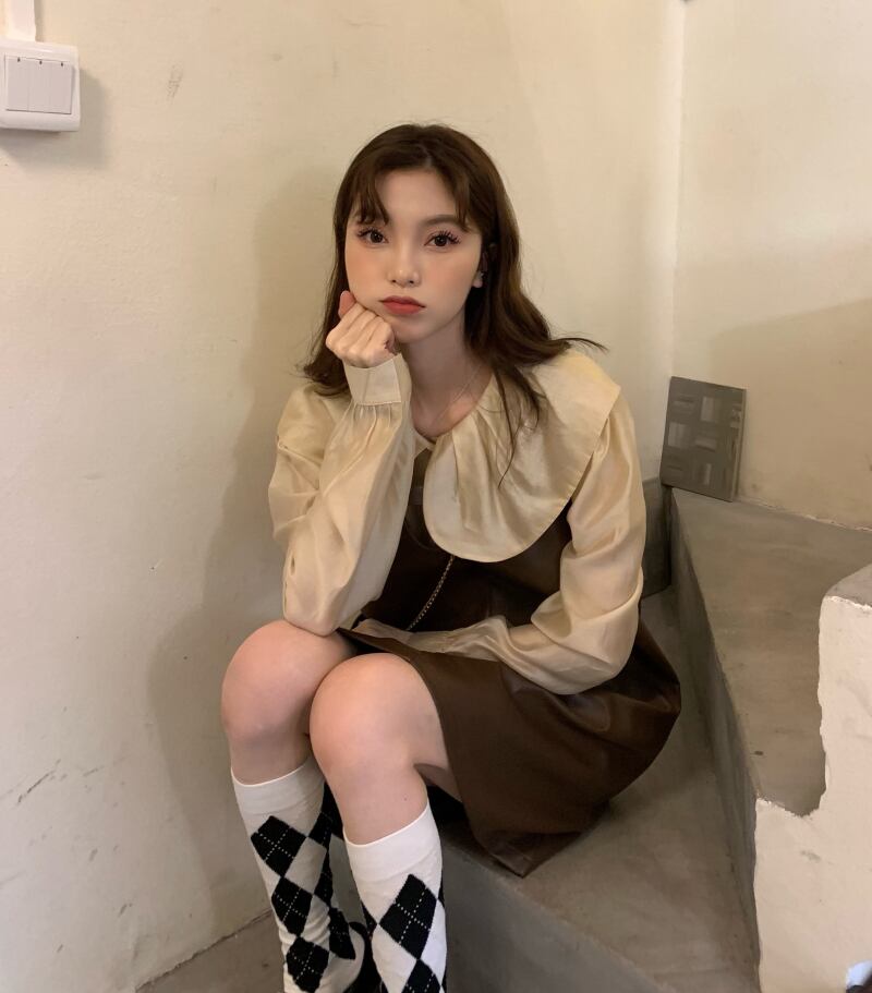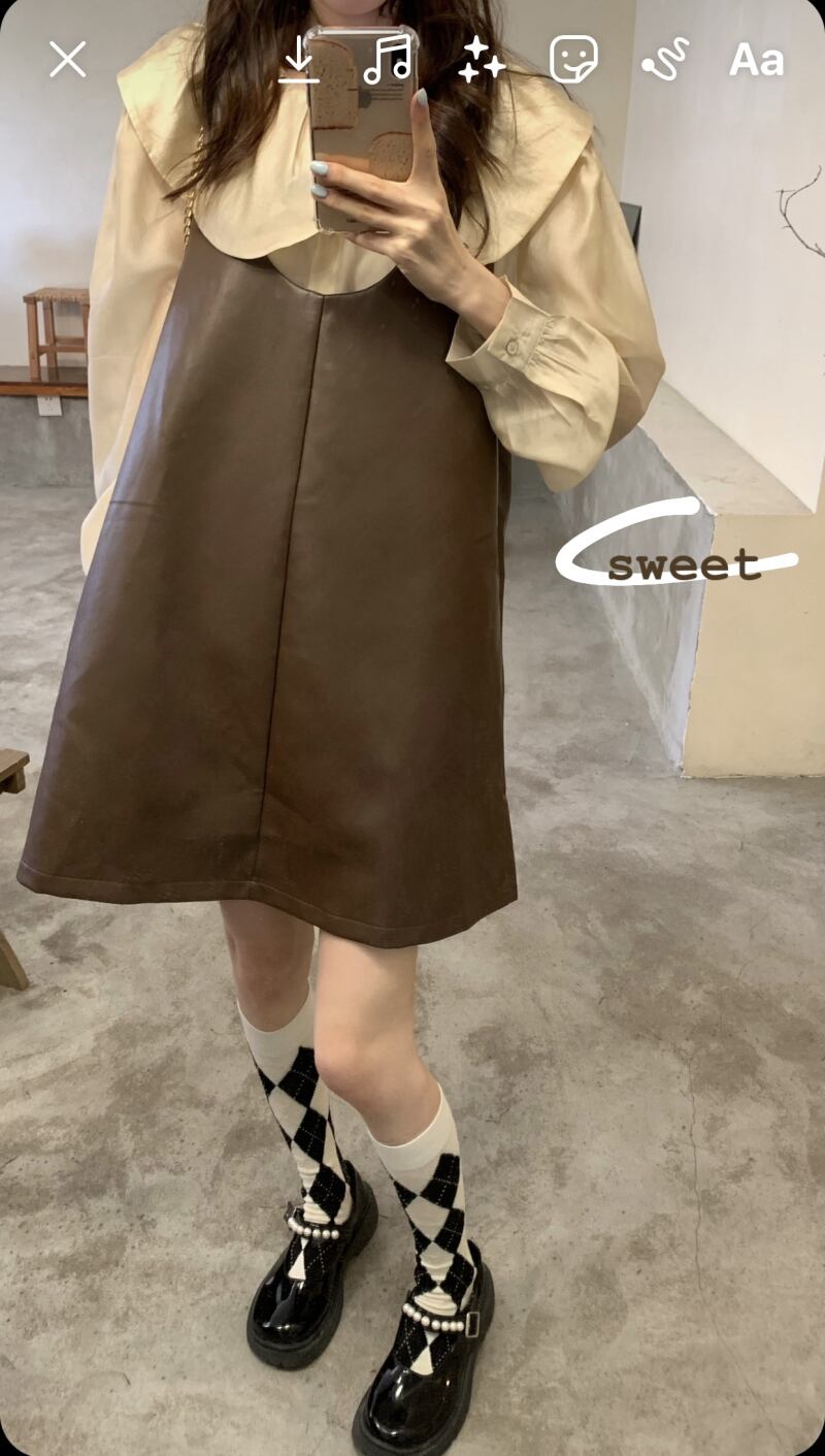 色:ドールカラーシャツ,コーヒー色のドレス