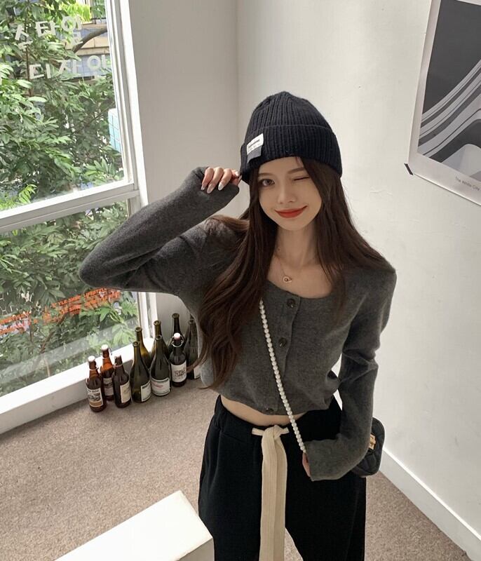 ショートセーター オータム薄手トップス コート ロング 秋物 スクウェア モンロー96434762709