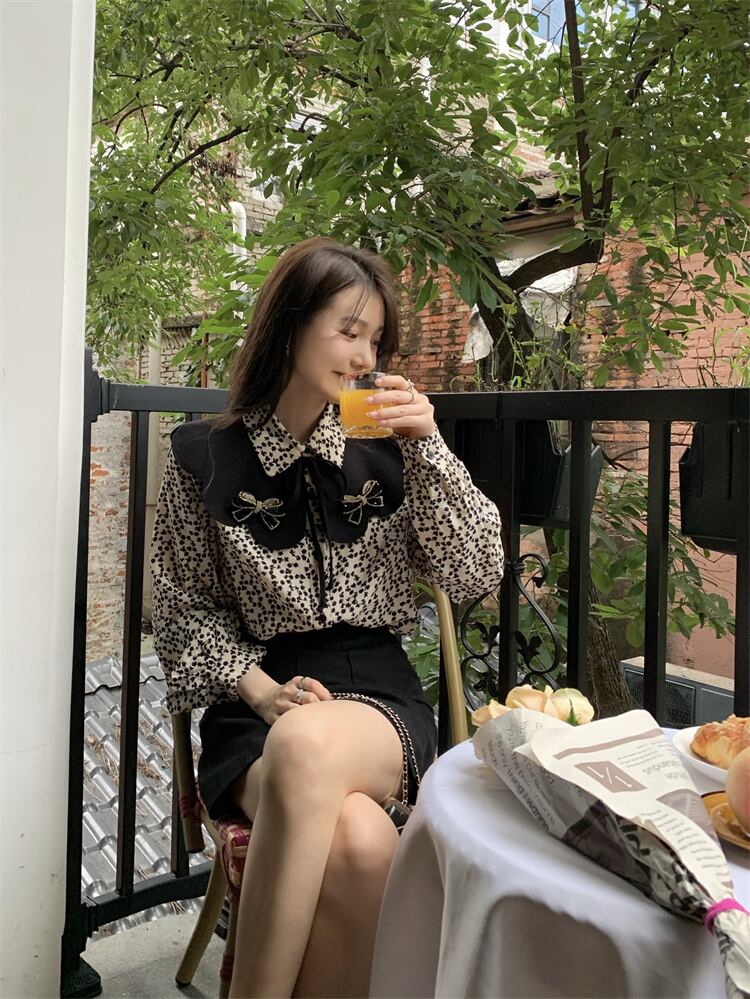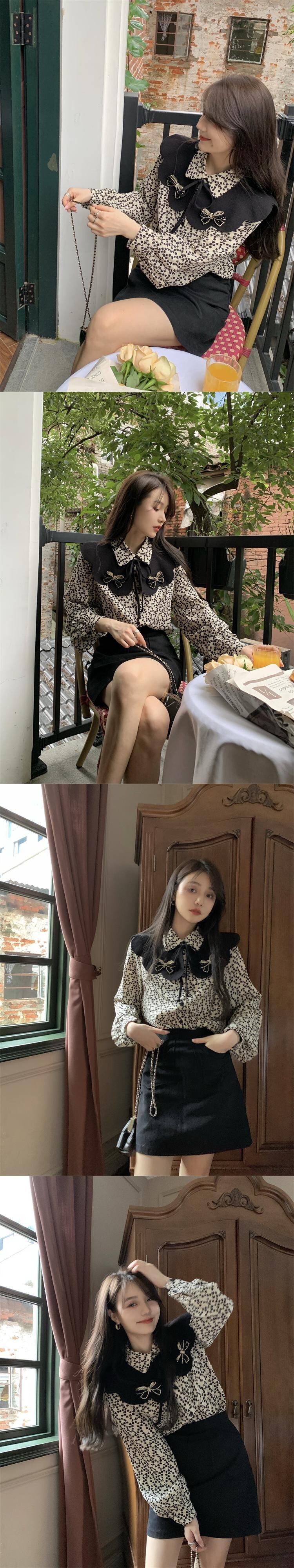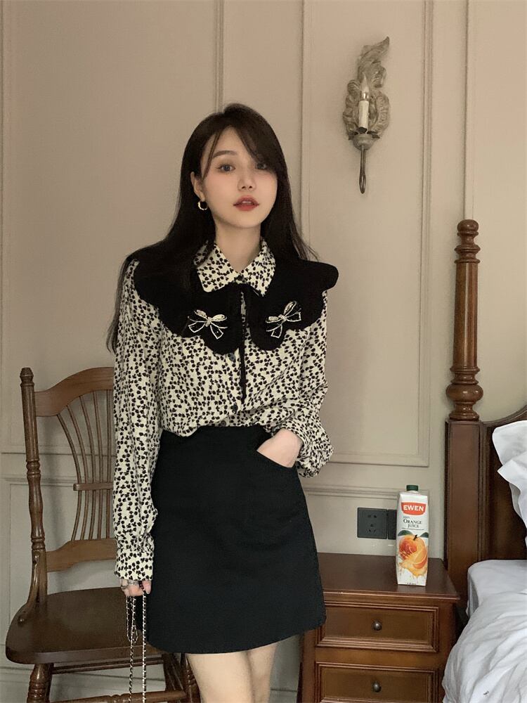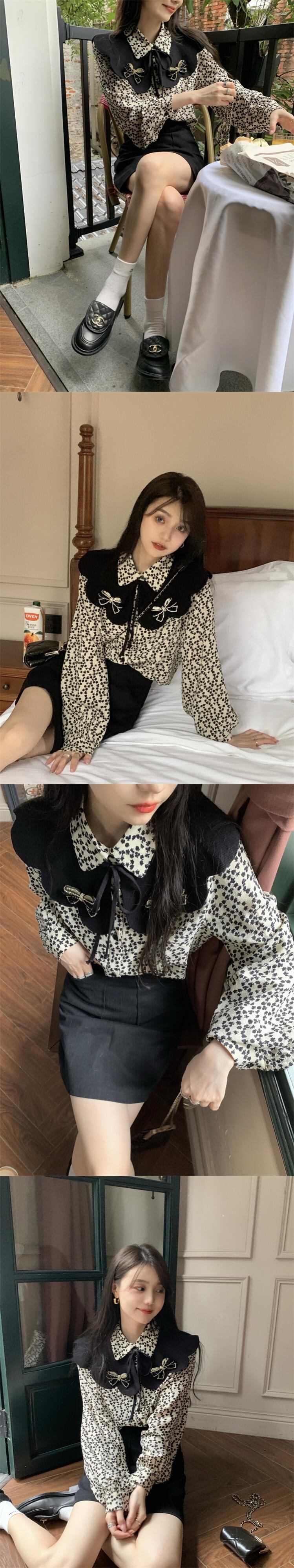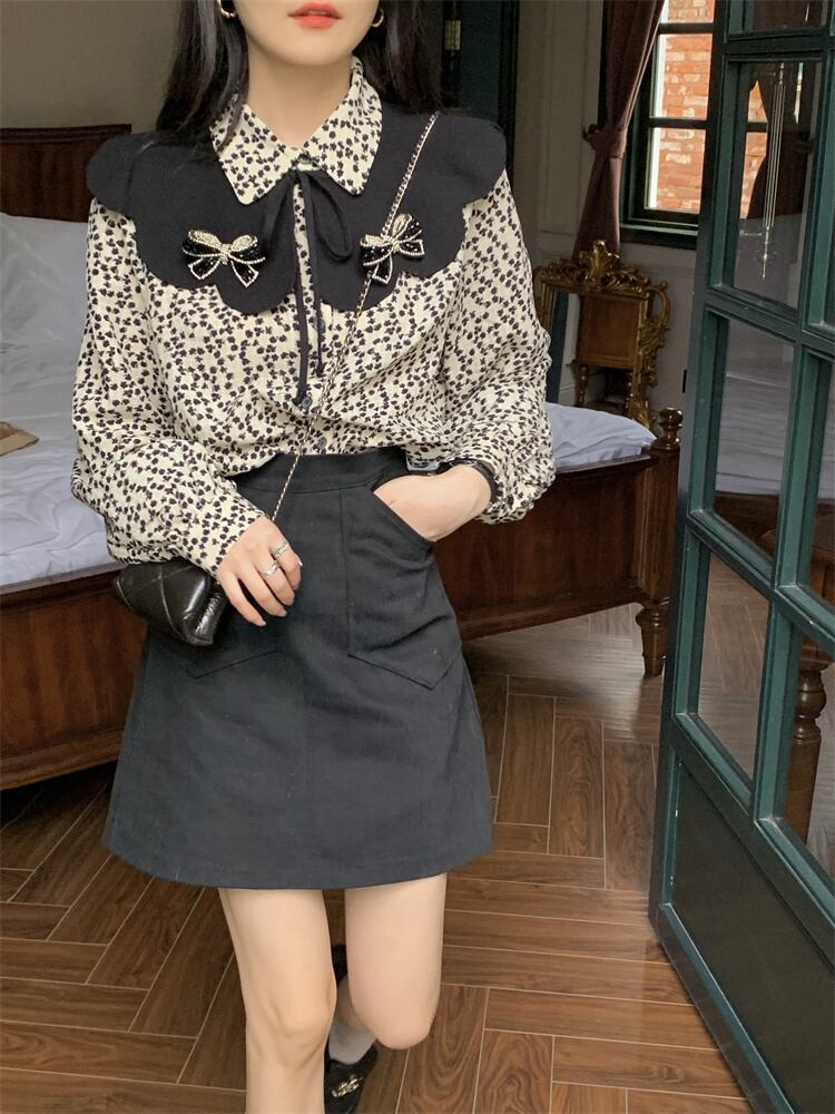 スタンダードオータムリボンフローラルシャツ レトロ 秋物 花柄 モンロー40009981951