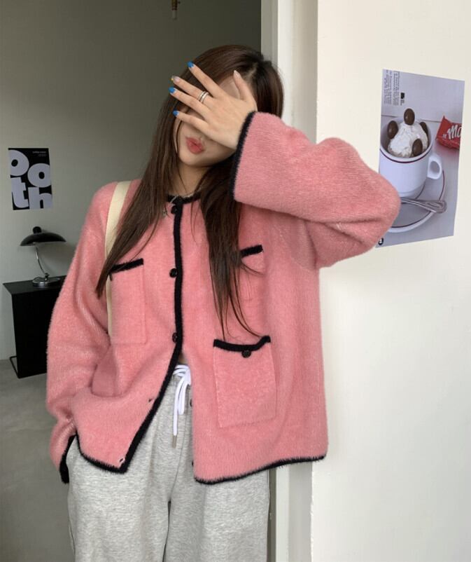 スタイルルーズニットカーディガンオータムジャケット ロング ピンク 秋物 モンロー29597993557