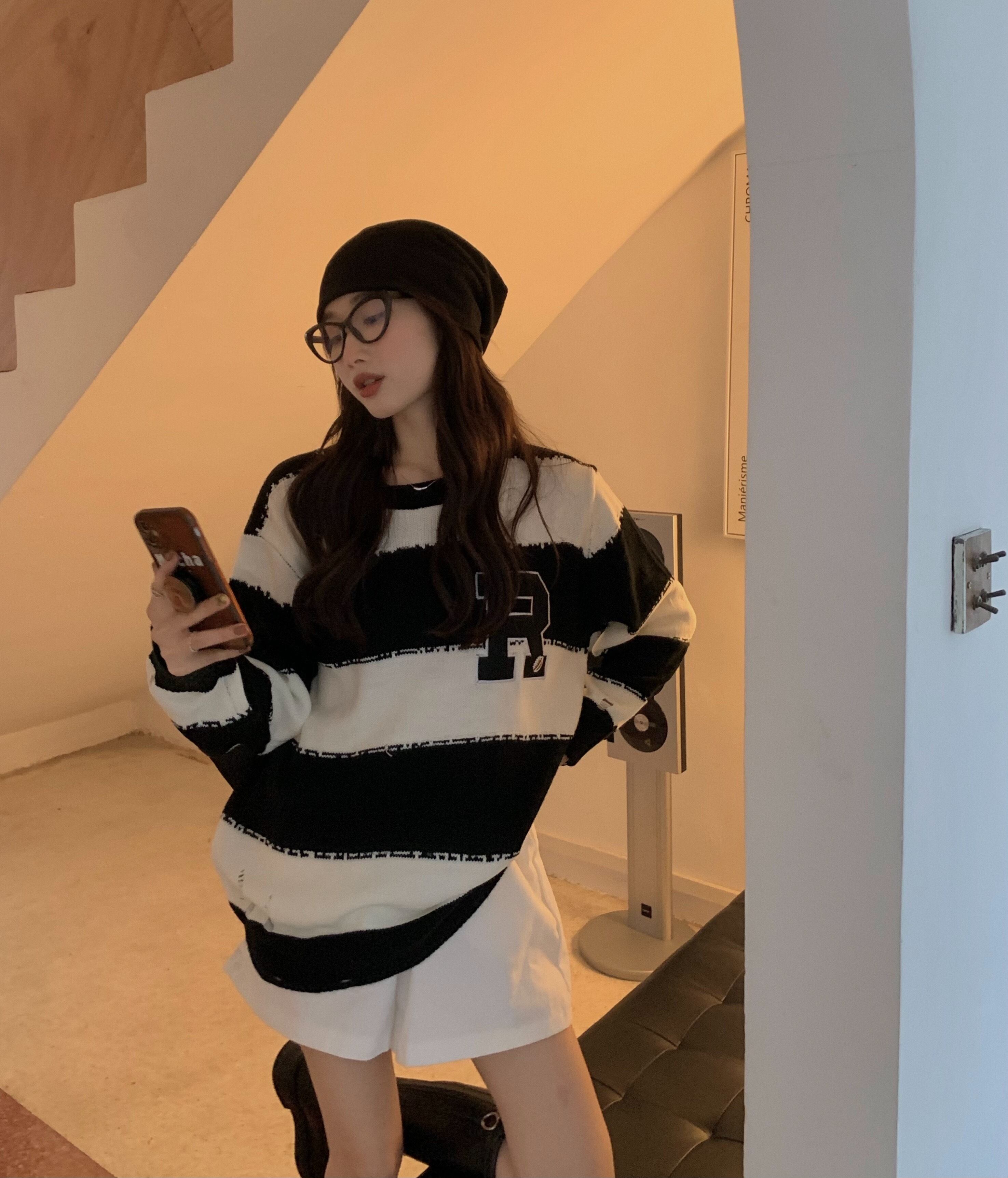 オータムルーズストライプニットセーター 秋物 モンロー30207629230