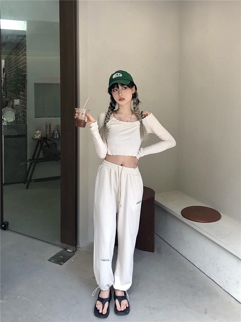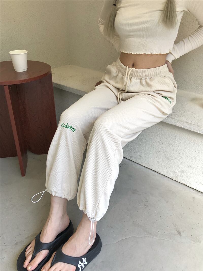 ブラックハイウェストカジュアルパンツ スプリングオータムルーズワイドレッグ 春物 秋物 ワイドパンツ モンロー75544542752
