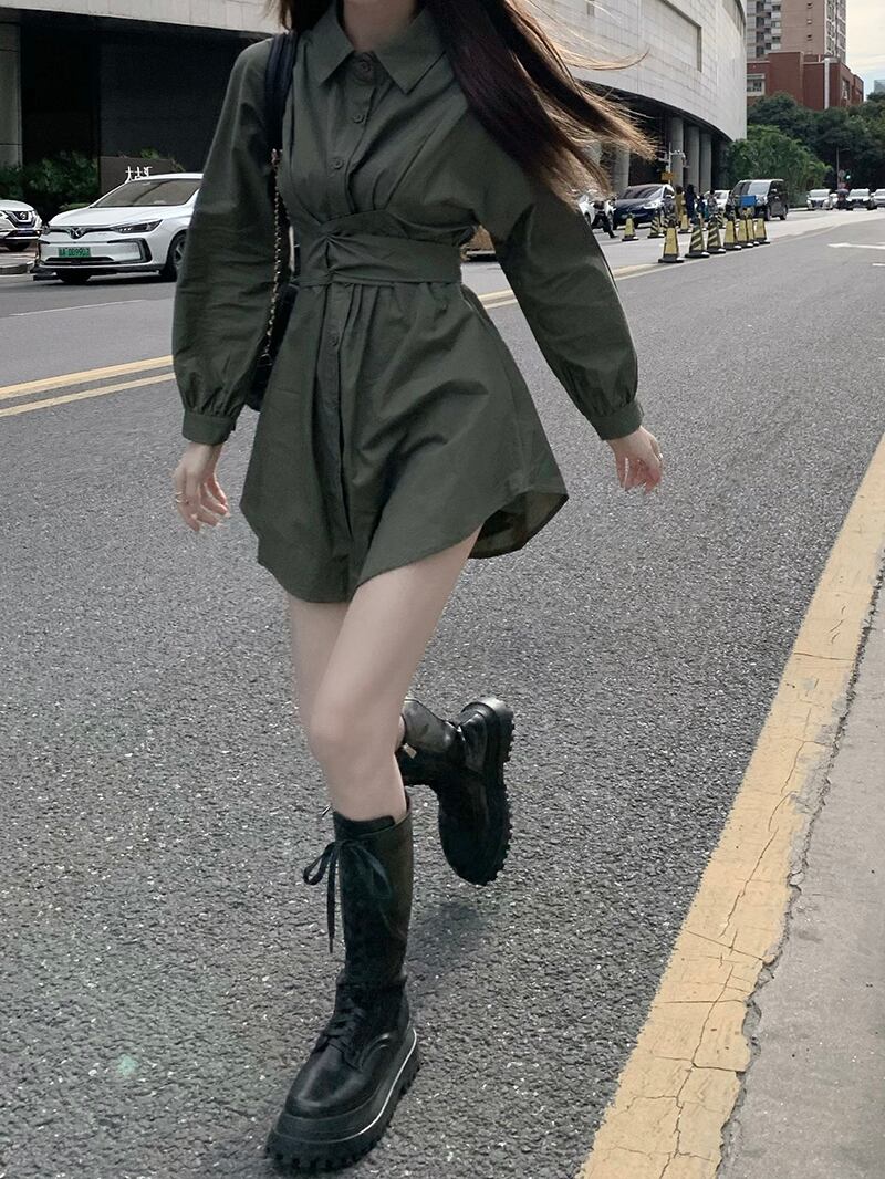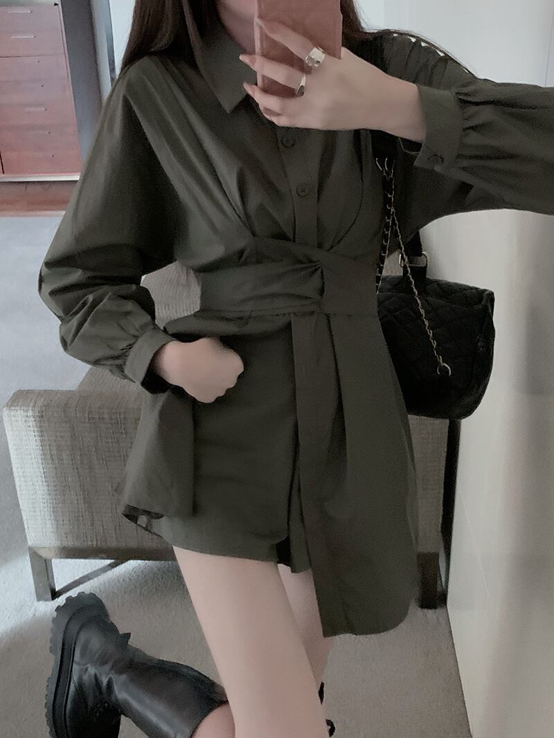 オータムシャツ ドレス グリーンウェストショーツ ロング 秋物 ブルマー モンロー71471682092