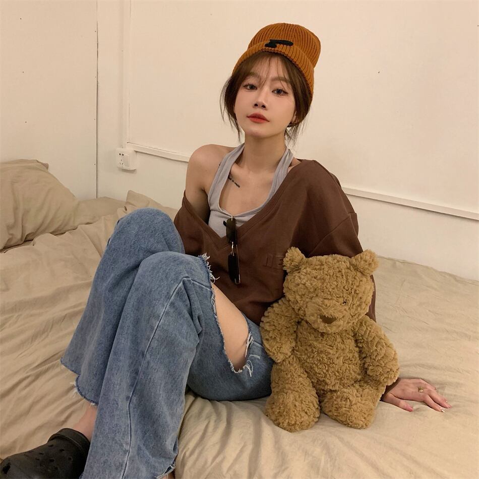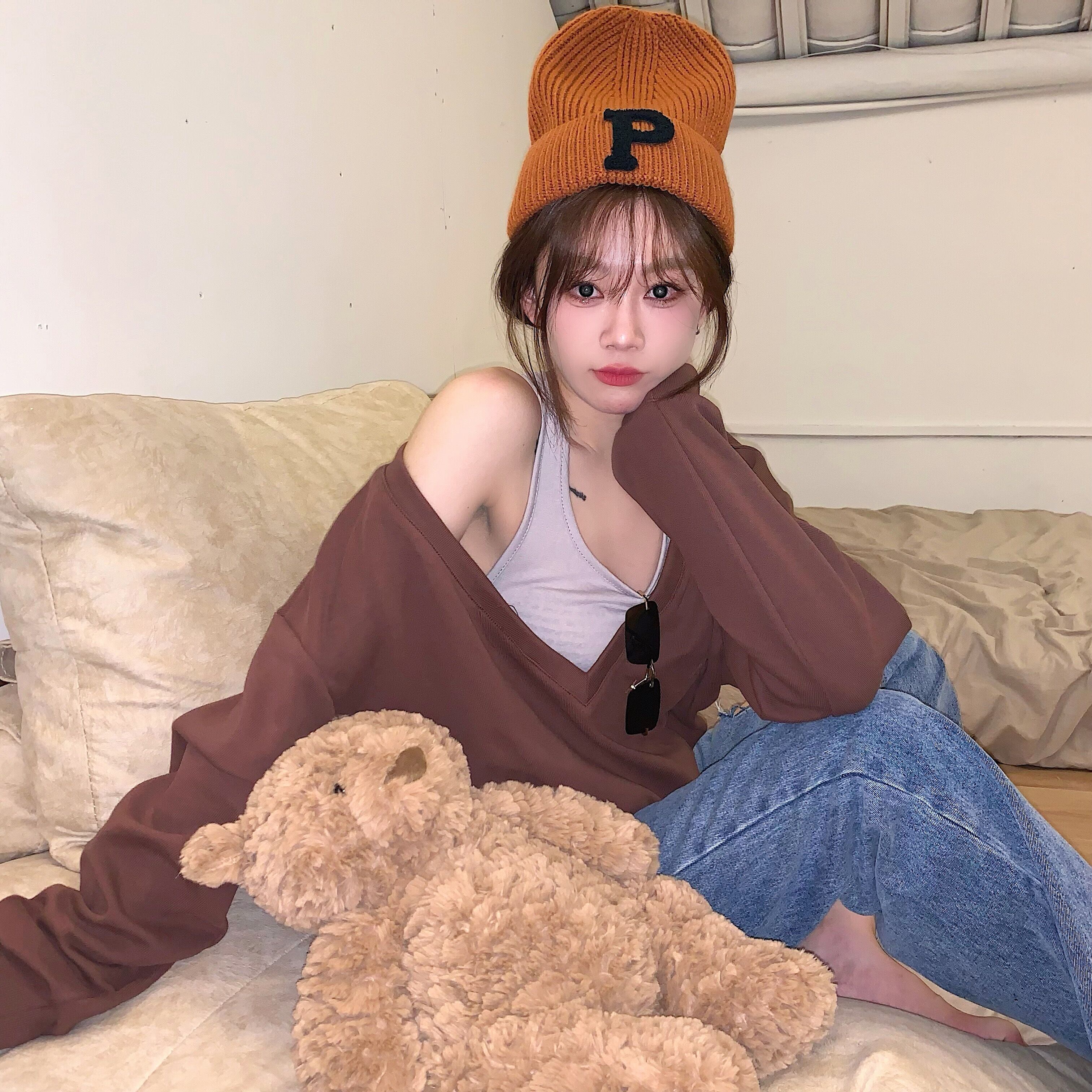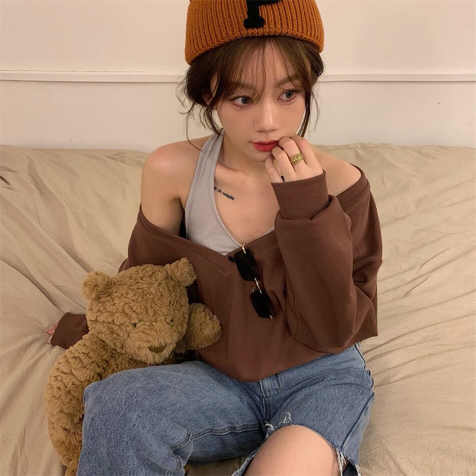 セーター オータムVネックプルオーバー トップス ロング 秋物 オフショルダー モンロー44794444715