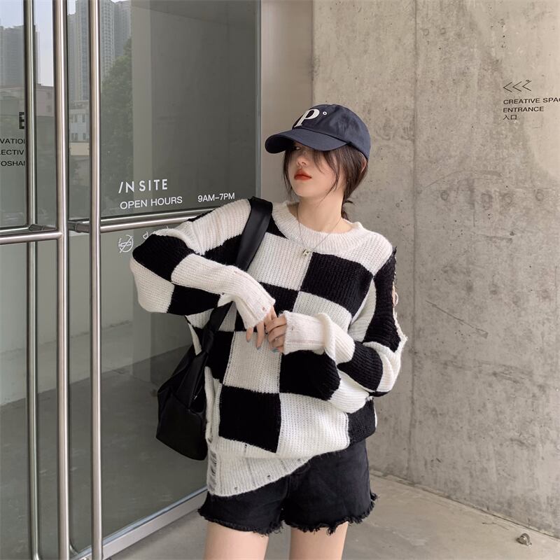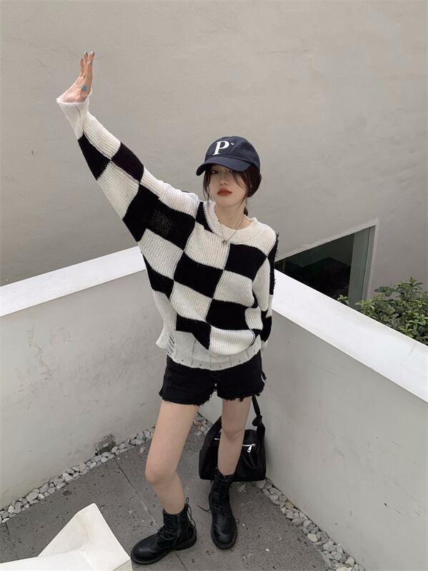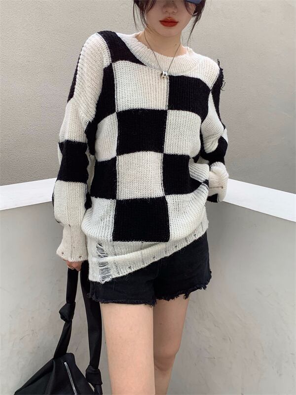 スタンダードルーズニットセーター コート オータムストラップレスプルオーバー トップス レトロ 秋物 モンロー43629564972