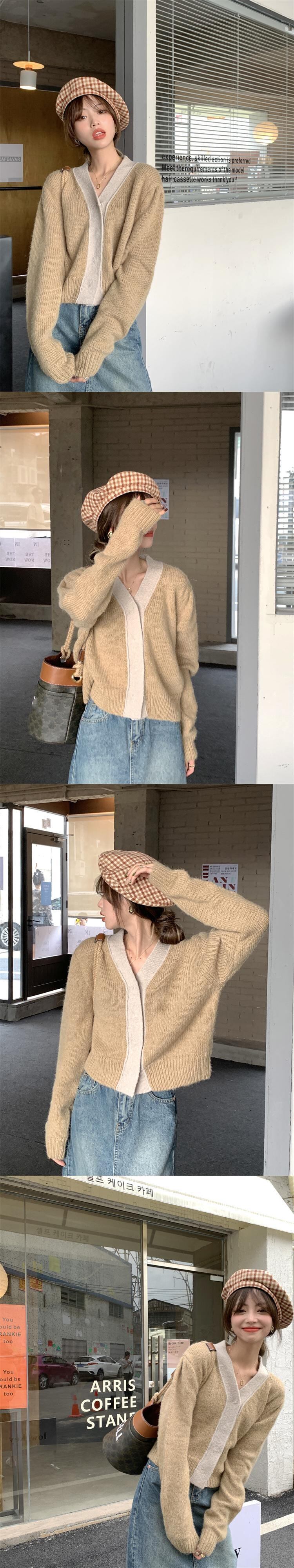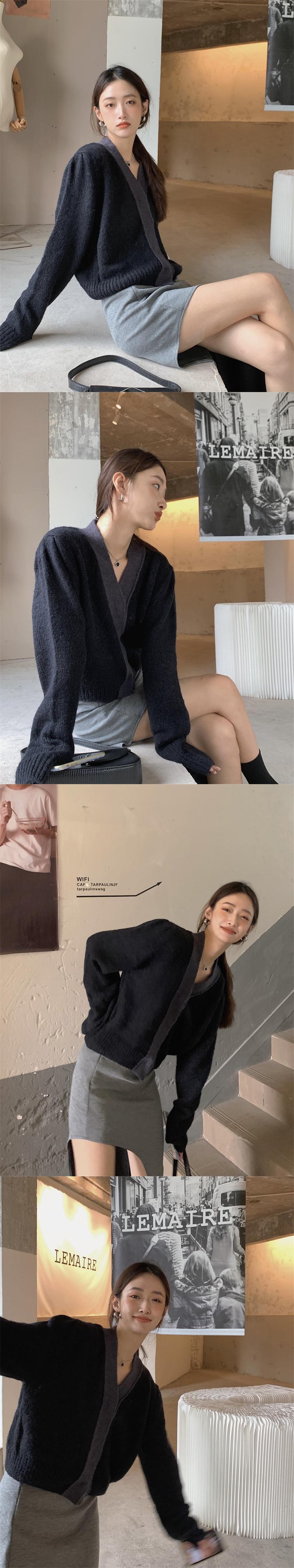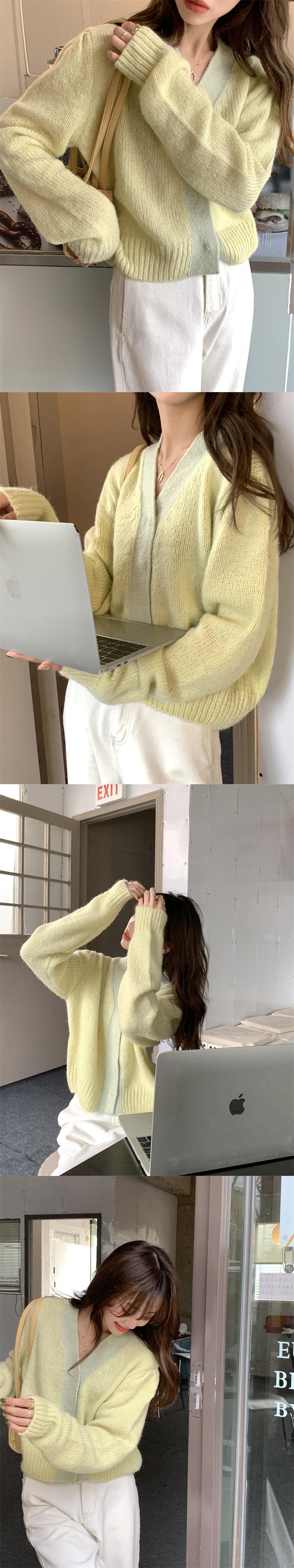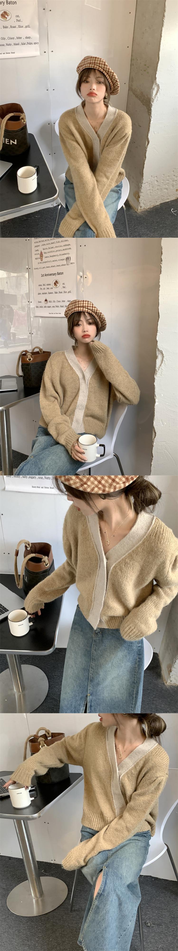 スタンダードルーズニットセーター オータムVネックカーディガントップス ロング レトロ 秋物 モンロー64161175857