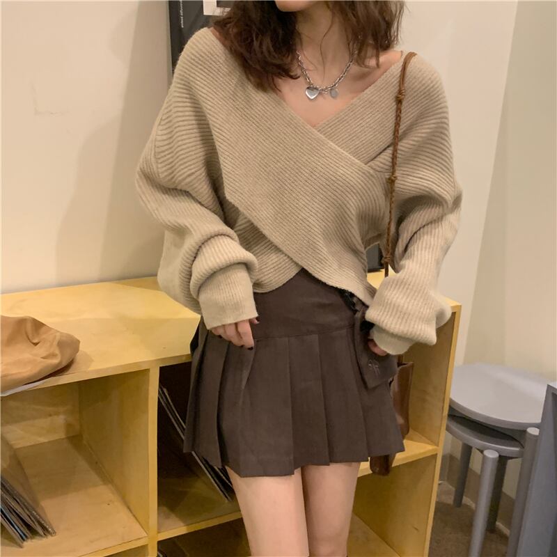 スタンダードスタイルVネックプルオーバー セーター オータムルーズシャツ ジャケット ロング レトロ 秋物 モンロー37013166182