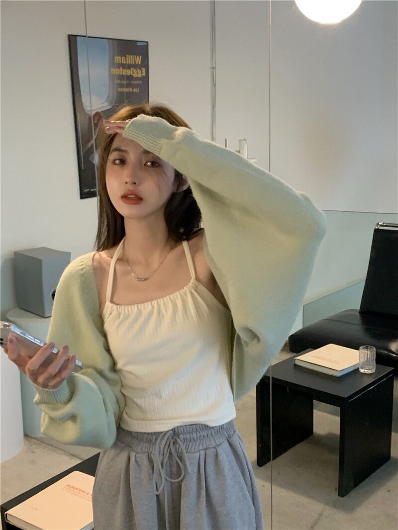 スタイルショートニットカーディガンオータム薄手セーター コート トップス ロング 秋物 モンロー4242734601