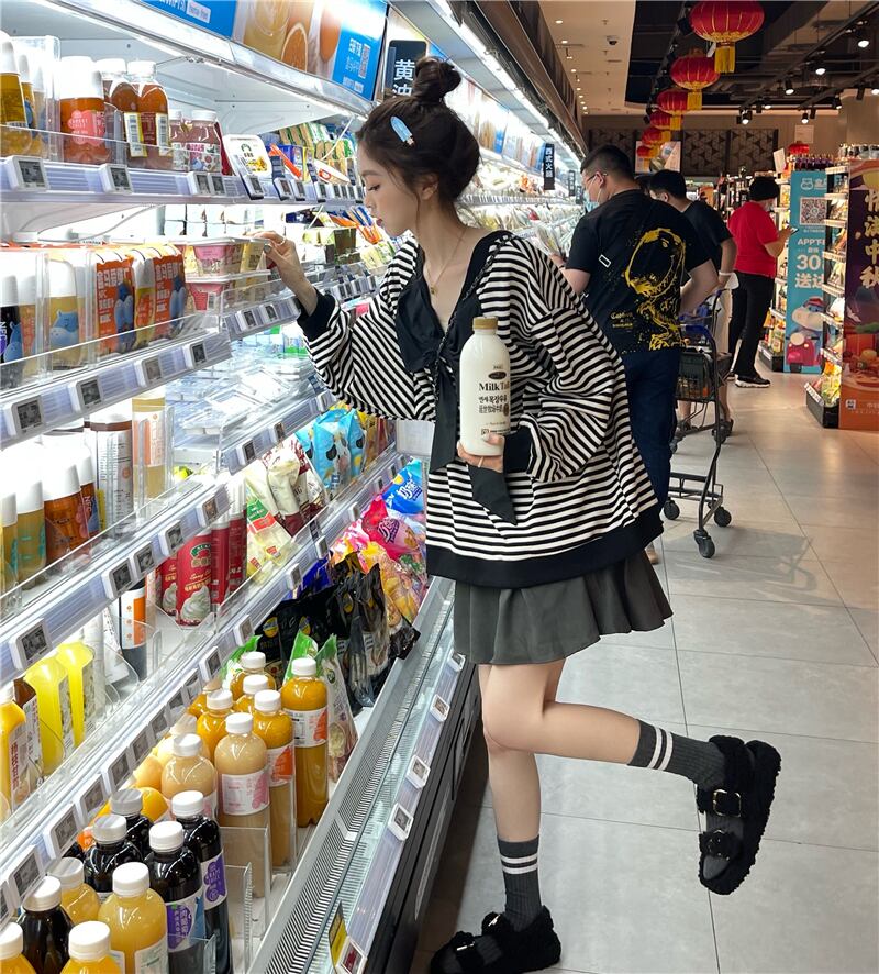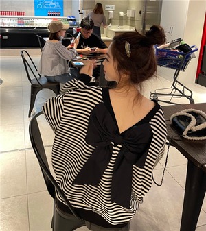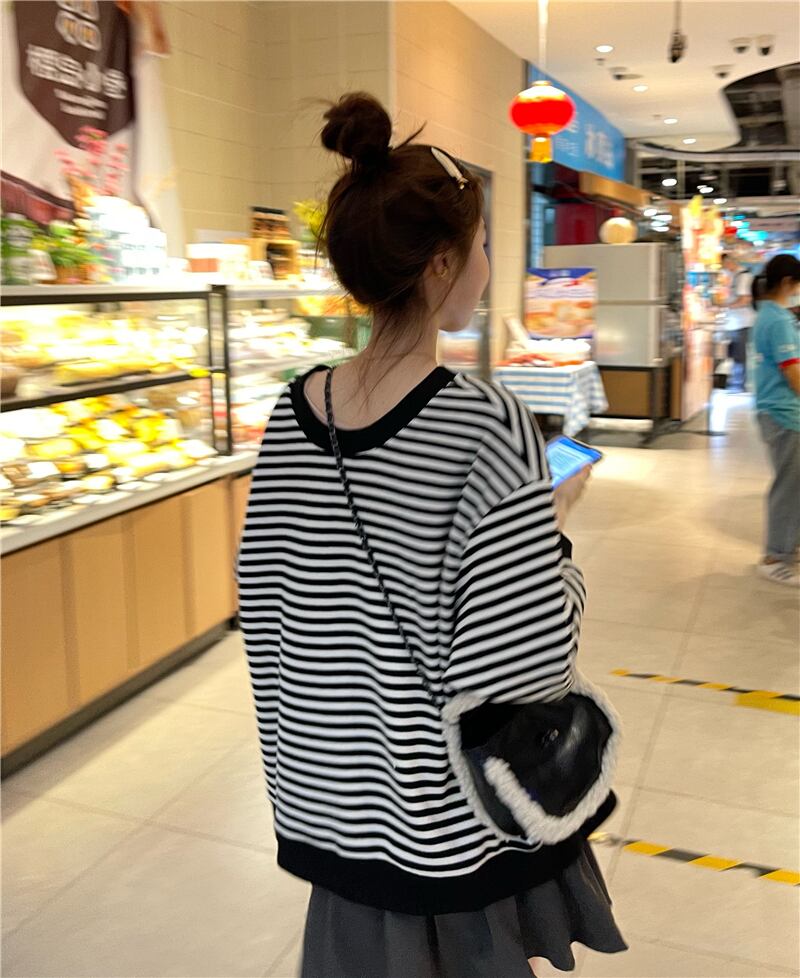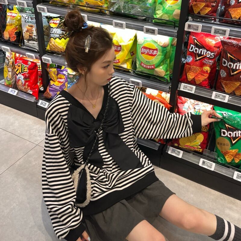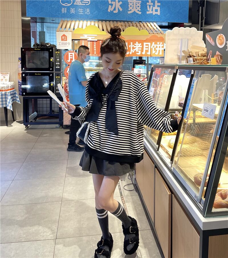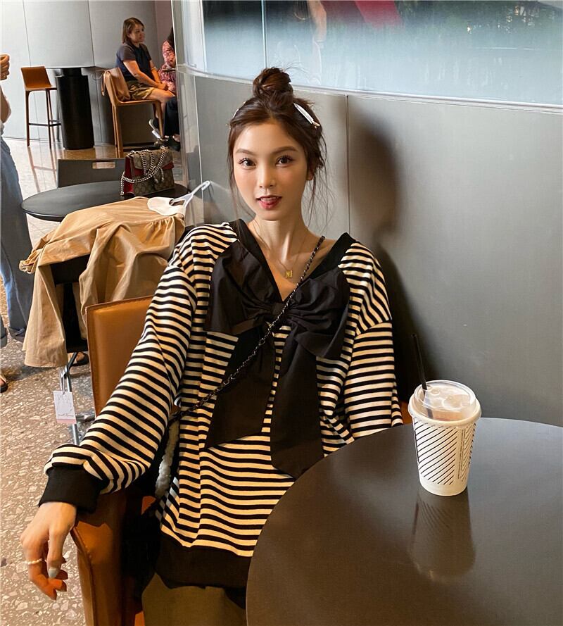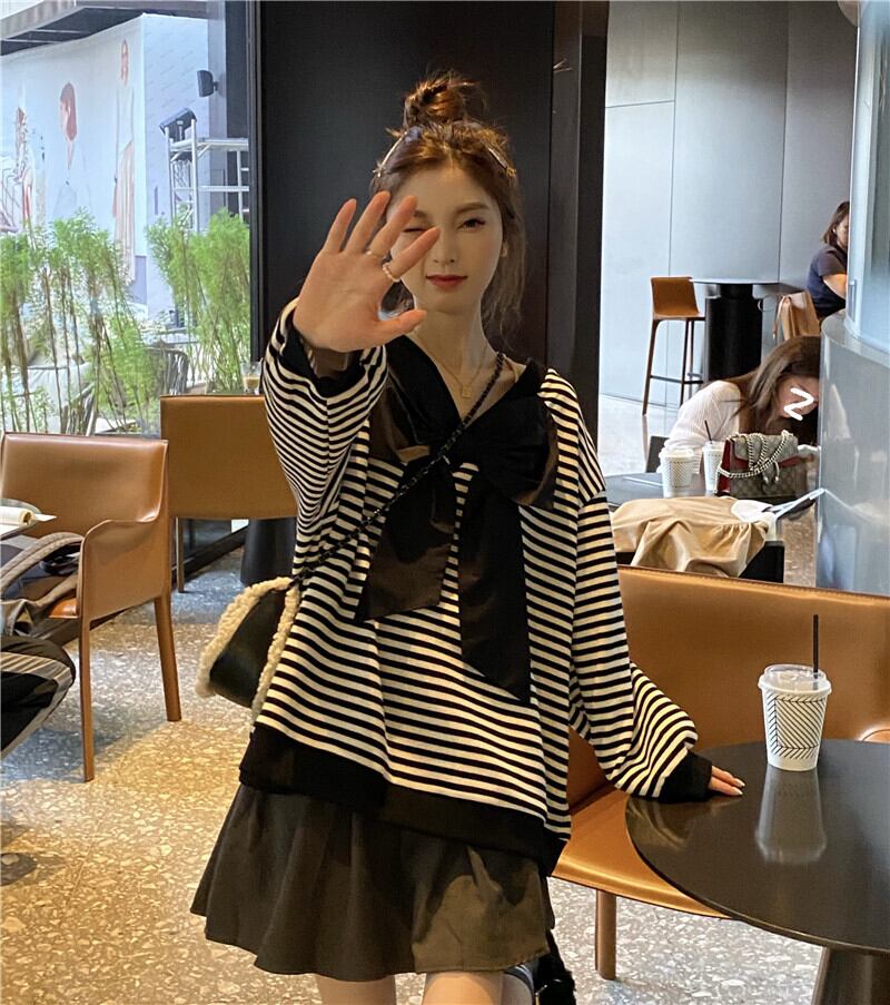 ストライププルオーバー ルーズセーター コート オータムスタイル薄手トップス 秋物 モンロー15087409412