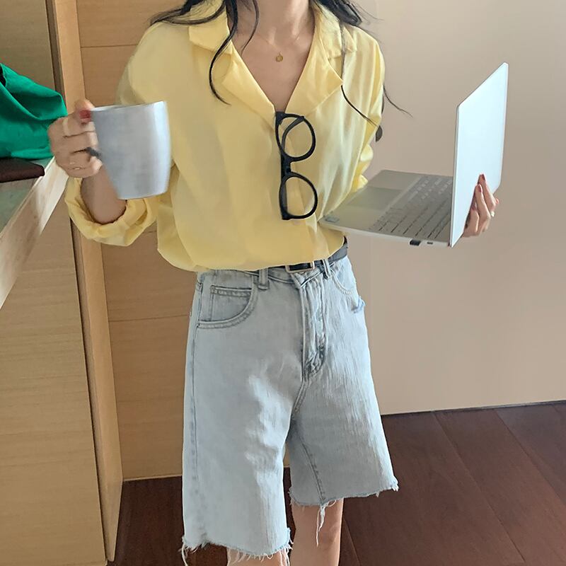 イエローシャツ ジャケット オータム薄手 ロング 秋物 モンロー39507676021