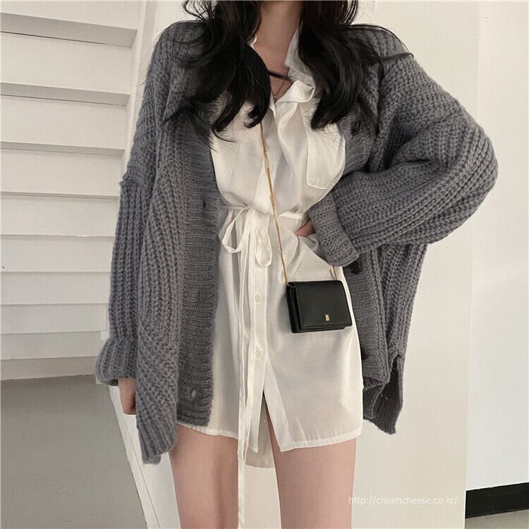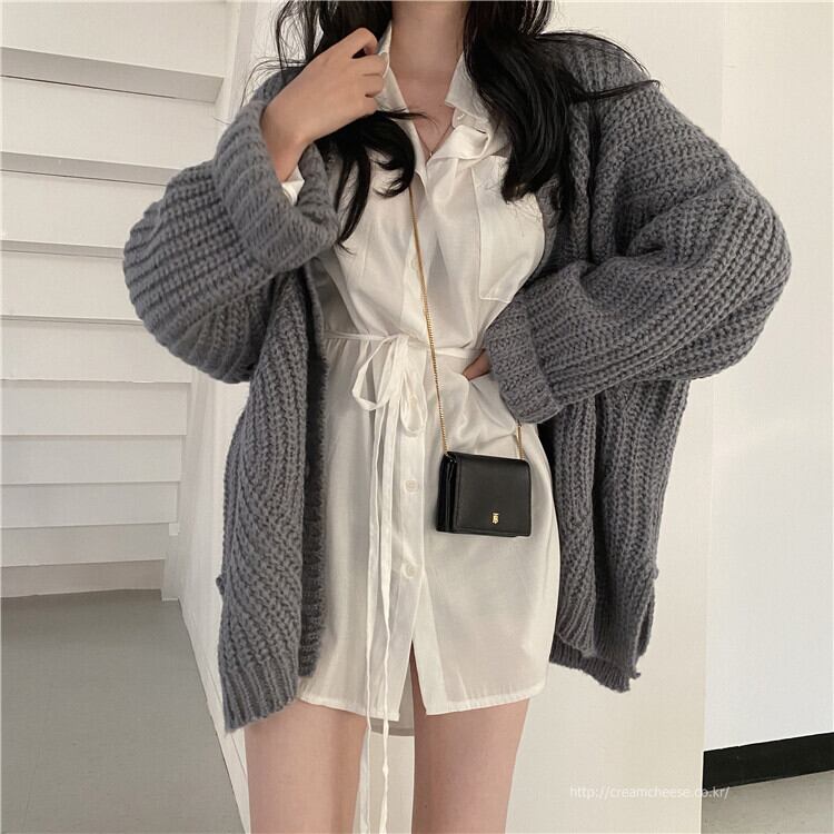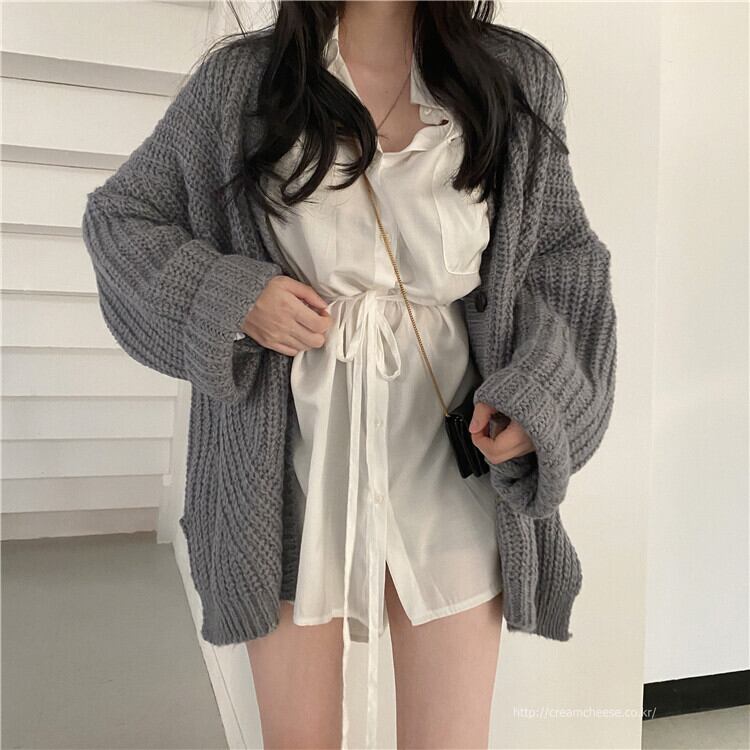 スタイルルーズニットカーディガンオータムダークグレーセーター ジャケット Vネックトップス 秋物 モンロー94442195867