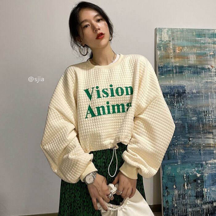 スタイルショートルーズ薄手セーター ジャケット オータムプリントプルオーバー トップス 秋物 モンロー56246431004