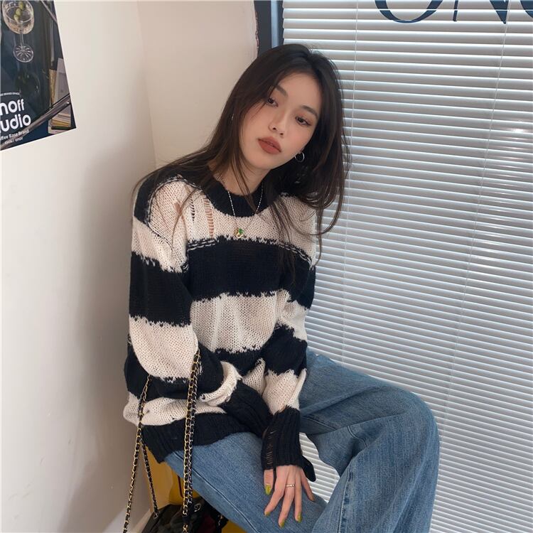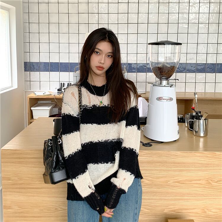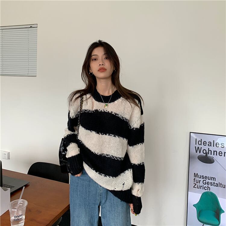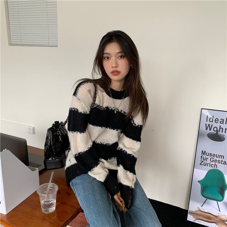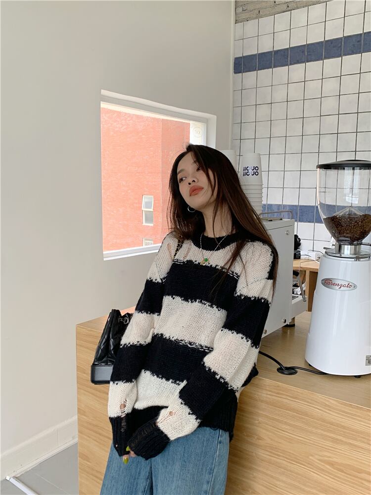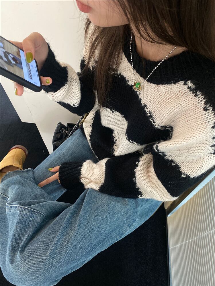 スタイルストライプスタンダードセーター オータムプルオーバー ジャケット ロング レトロ 秋物 モンロー69184609939